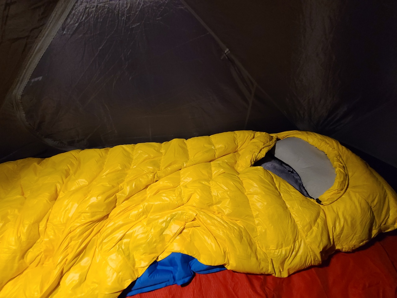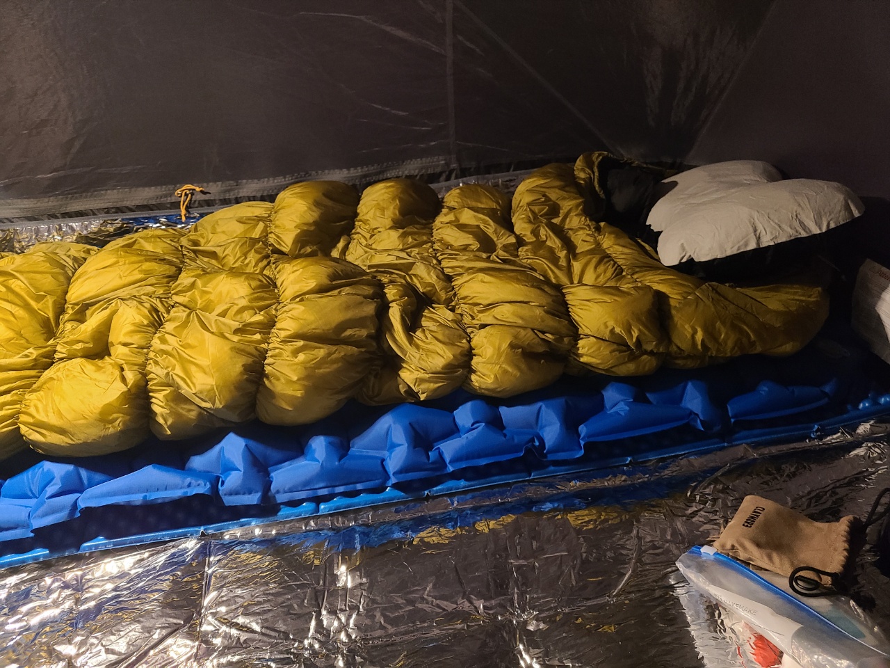 ▷매트 : 하계엔 네이처하이크 에어매트로도 충분해서 이거만 쓰다가 늦가을, 초겨울 바닥 한기 차단용으로 발포매트 추가구매함. 늦가을, 초겨울엔 발포 깔고 그 위에 에어매트 깔아 쓰고 있음. 에어매트는 두께가 얇고 알밸류는 낮지만(추정치 1.5) 단독 또는 발포매트와의 조합으로 11회 백패킹 내내 쭉 쓰고 있다.