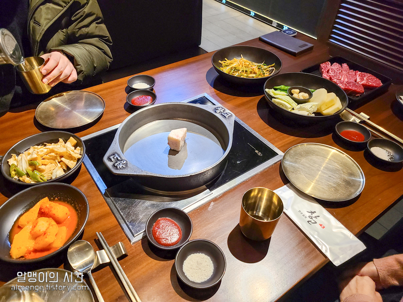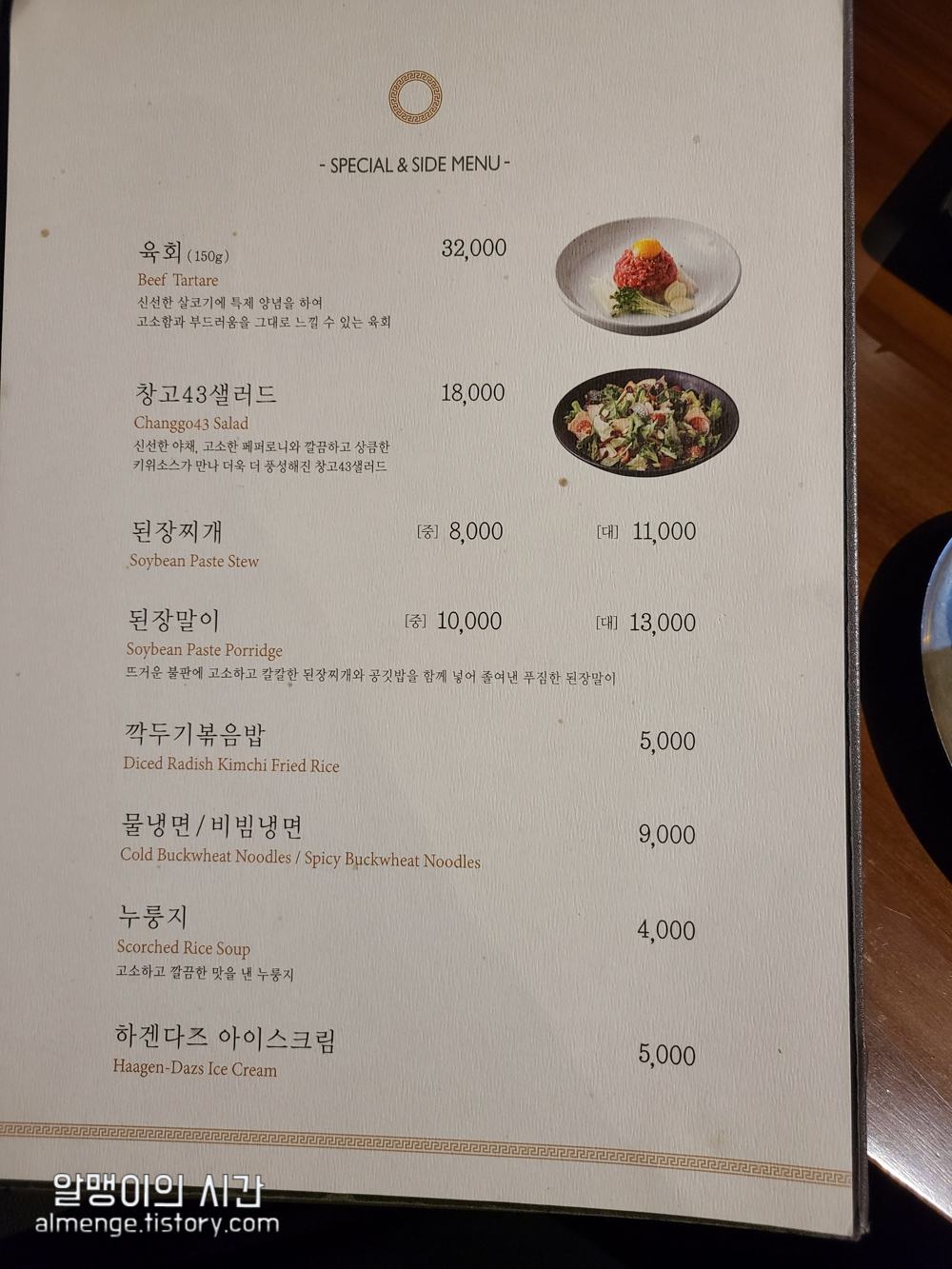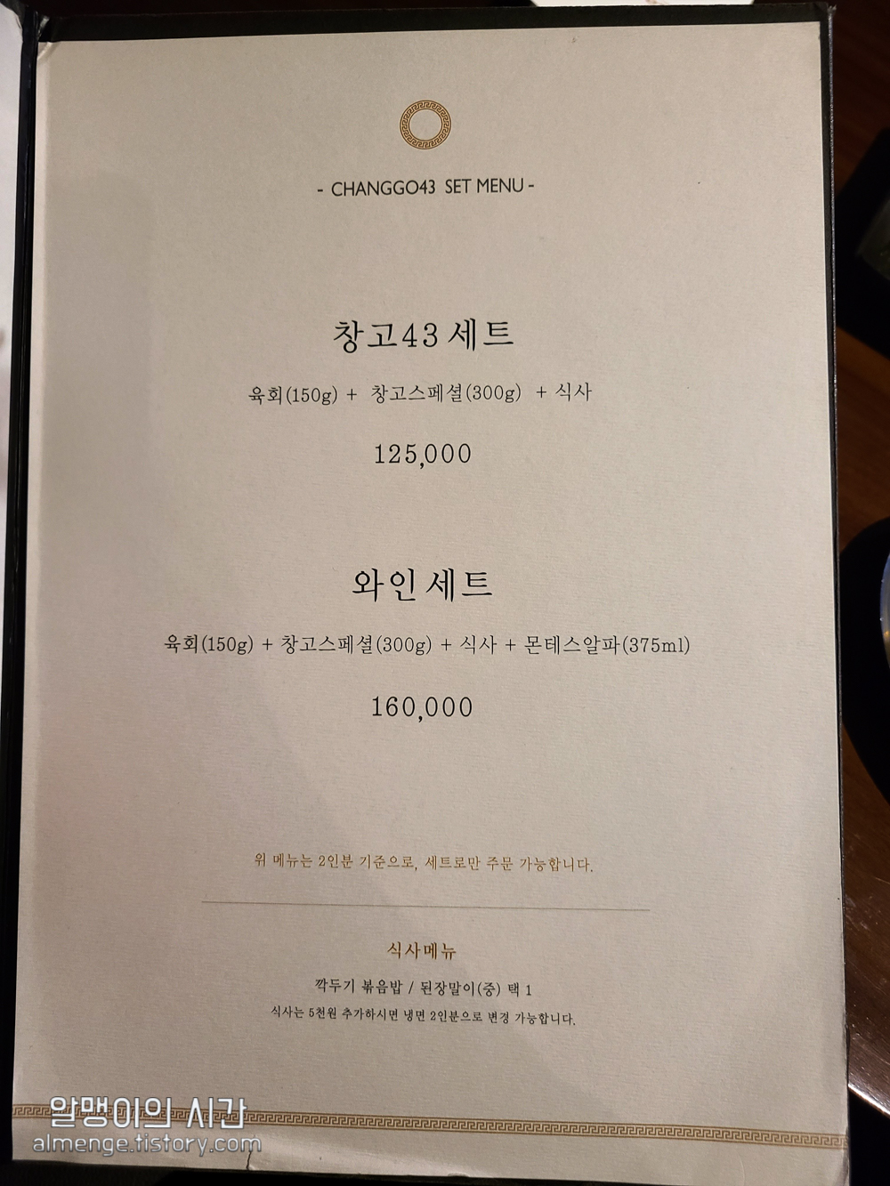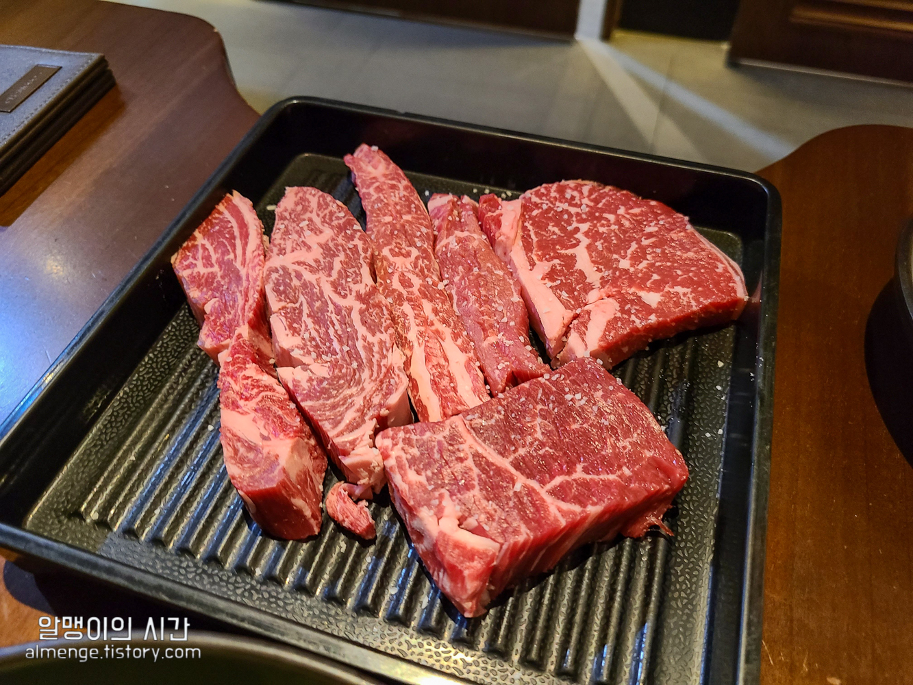 구이류는 전부 한우만 취급하고 있고 가격대를 보다시피 어느정도 플렉스가 필요할 때 가기 좋은 곳. 우린 등심+안심이 같이 나오는 창고스페셜로 주문!
