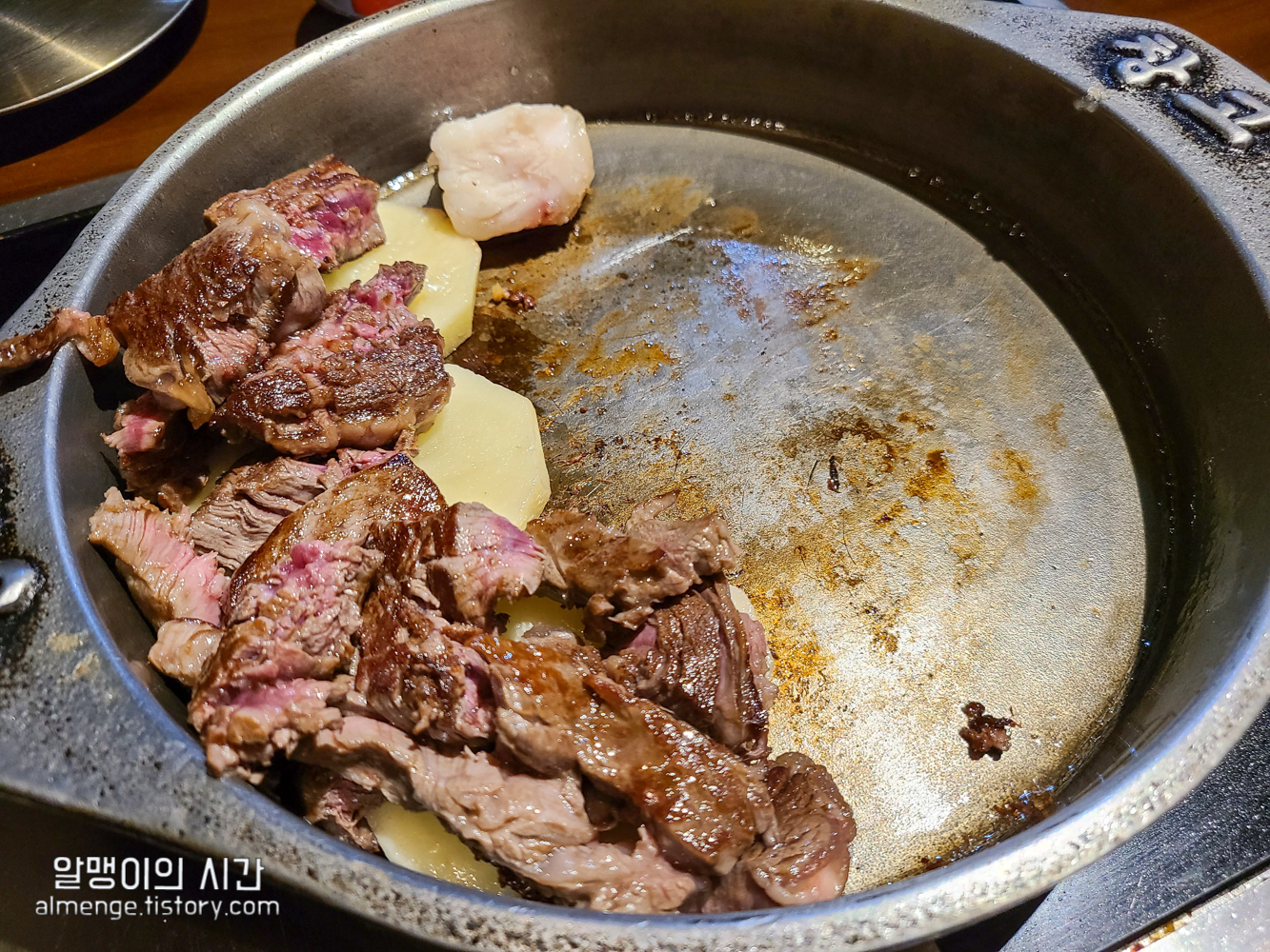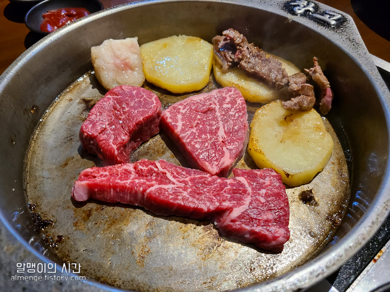 바로 추가 주문 1인분 들어감 ㅎㅎ고기 상태가 완전 굿굿. 고기 기름에 노릇노릇 구워진 감자도 완전 별미!