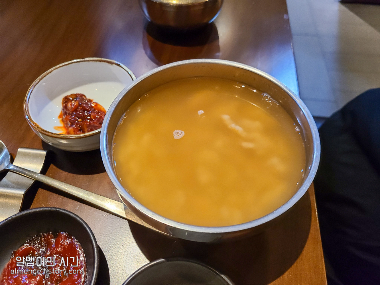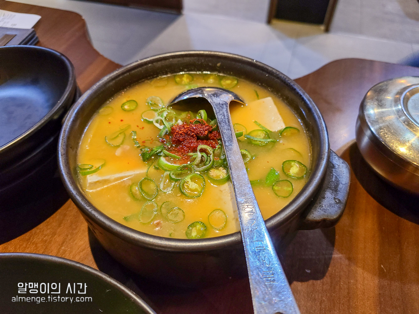 된장말이라고 되어있길래 특이해보여 시킨건데 결과적으로 맛은 된장찌개에 밥 말아먹는 느낌과 비슷비슷. 맛이 없는 건 아닌데 이미 아는 맛이라 별다른 신선함은 없었다. 예전에 먹은 깍두기 볶음밥이 내 입엔 더 잘 맞았다. 개인적으론 깍두기 볶음밥 추천!