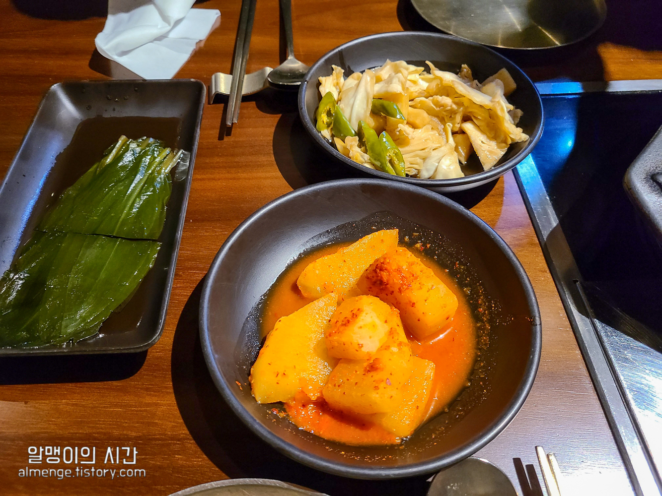 양배추 절임과 석박지가 맛있어서 몇 번 리필해 먹었다.