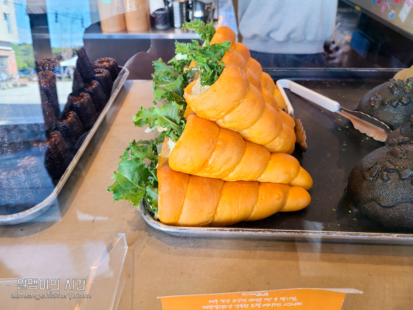 커피 주문하고 베이커리를 구경하는데 요 '캐그'라는 당근모양 빵에 꽂힌 원집사와 까눌레에 꽂힌 알맹이는 아침도 안먹은 상태로 냅다 빵 주문 ㅋㅋㅋ
