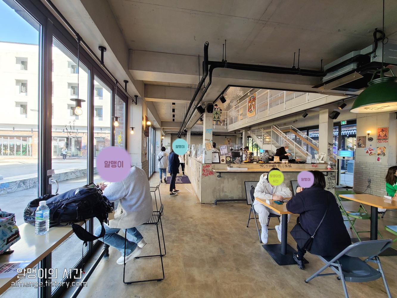 내부는 힙한 느낌으로 인테리어되어 있어요. 위 사진은 모두 1층 공간이고 2층에도 자리가 많아요. 일반적인 테이블 자리도 있고 요즘 카페 스타일(!)로 된 "불편하지만 보기엔 힙해보이는" 형태의 자리도 있어요. 좀 더 편안한 자리를 원하면 2층 자리 추천합니다.