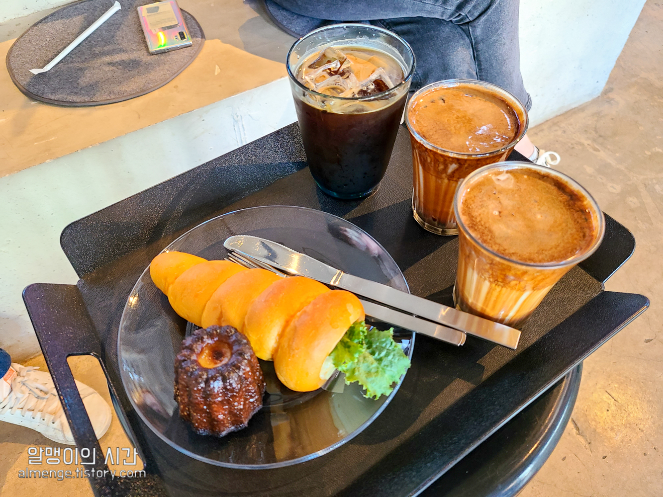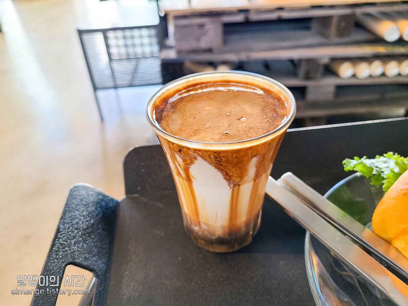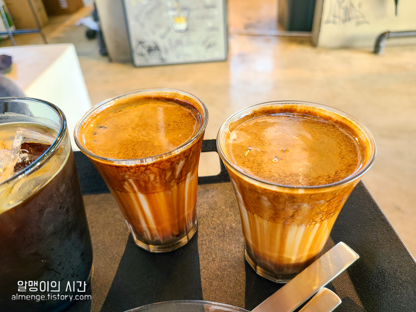 커피를 받을 때 직원 분이 섞지 말고 그대로 마시라고 안내해주는데 저는 반은 안내대로 마시다가 나머지 반은 섞어서 마셨어요. 아예 안섞게 되면 아래 깔린 에스프레소가 계속 남아 있거든요 ㅎㅎ