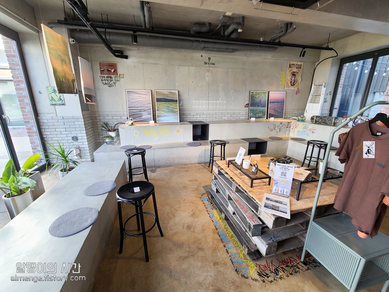 카페지만 이곳의 커피 원두나 티셔츠, 머그컵, 엽서 등의 굿즈도 같이 판매하고 있어요.
