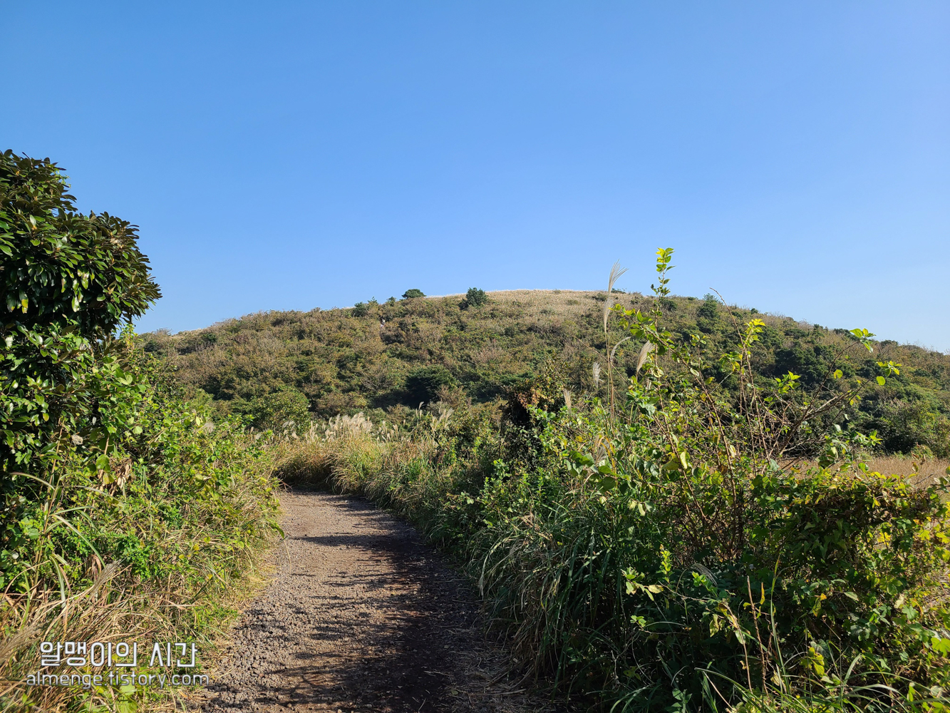 길은 하나 뿐이라 따로 지도보고 할 것 없이 길 따라 쭉 가면 됨. 우리가 갔던 11월 중순~말 경에는 억새가 만개했는데 오름에 오르기 전부터 이미 억새 한 가득! 그러나 오름에 올라가면 더 많은 억새가 기다리고 있으므로 사진은 위에 올라가서 많이 찍자요