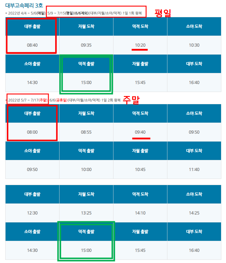 역시나 달마다 변동이 있을 수 있으므로 최신 시간표는 (유)대부해운 (daebuhw.com) 참고!