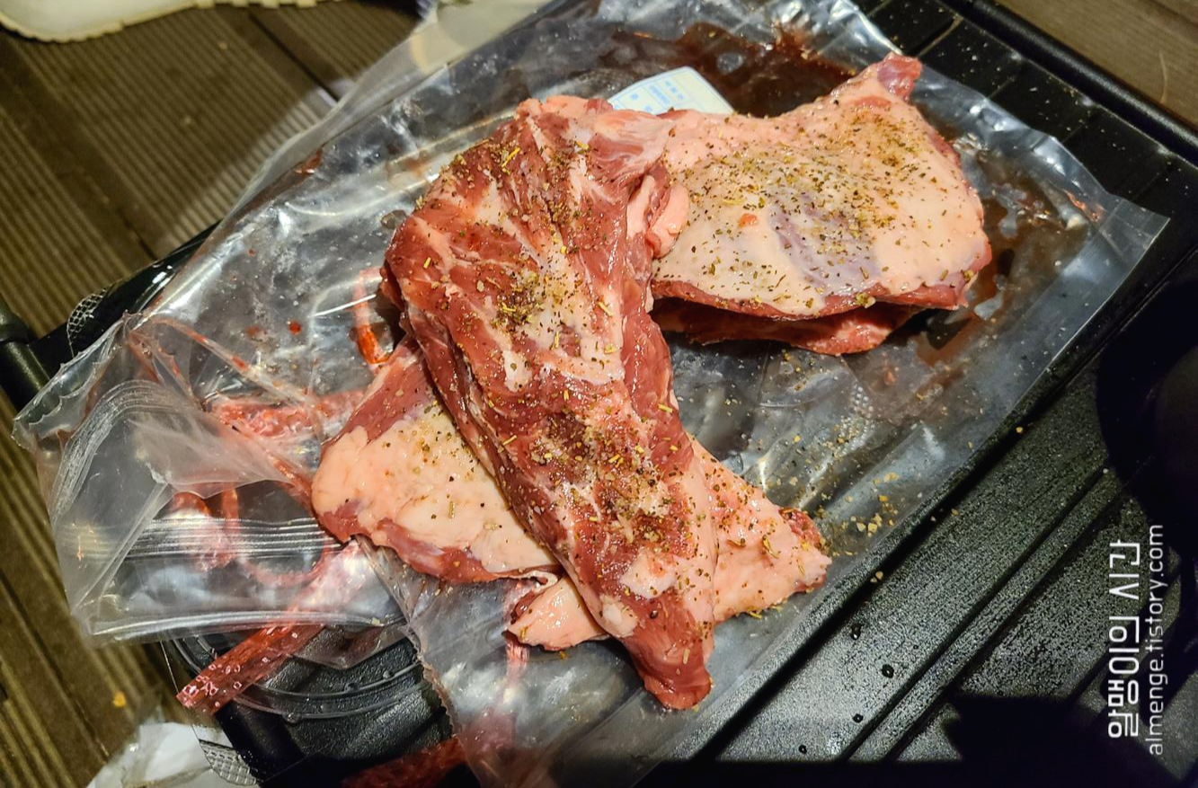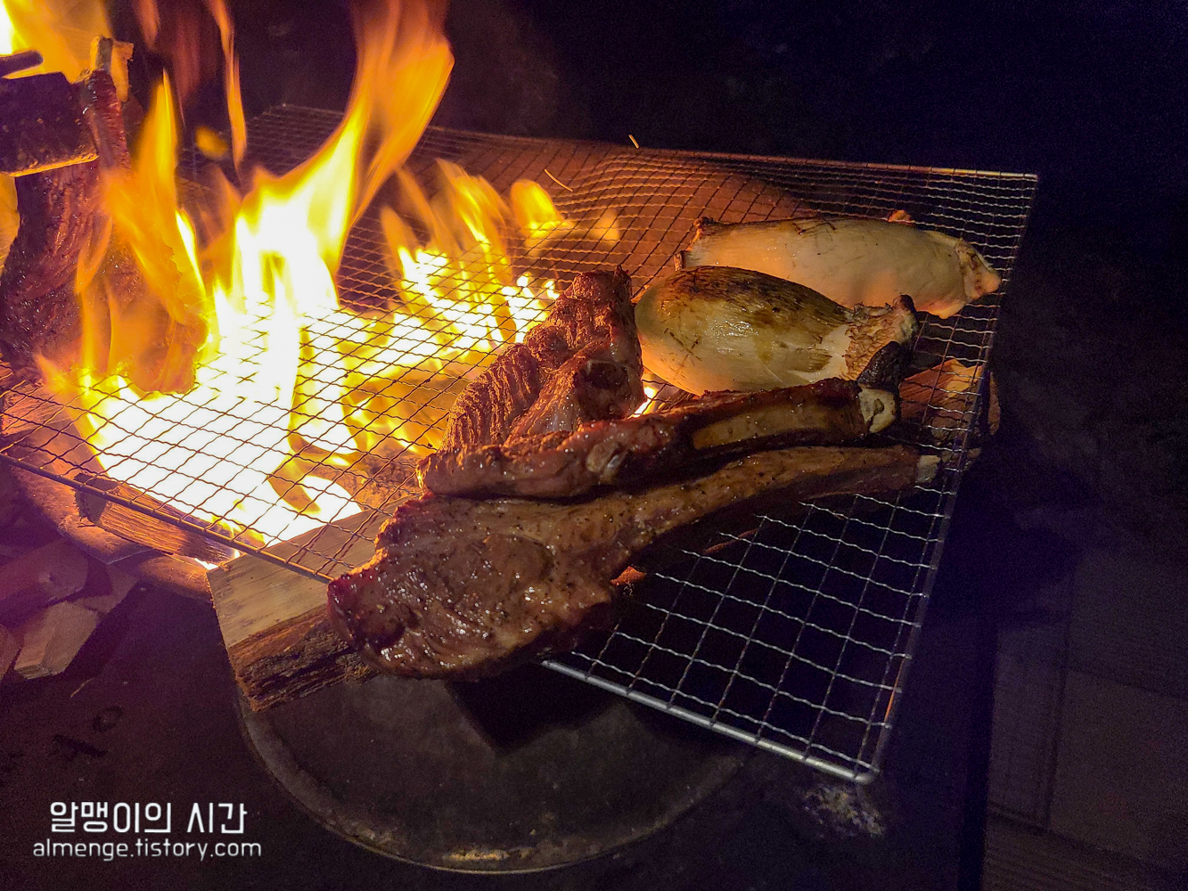 지난 번 솔캠 때는 양꼬치, 이번엔 양갈비 렉, 양목심이라니 ㅎㅎ 요새 너무 양파티 중인듯. 양고기 좋아❤
