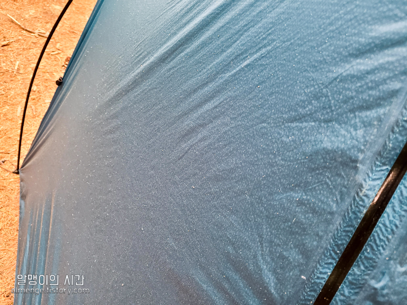 첨엔 텐트 위에 가루가 자꾸 앉길래