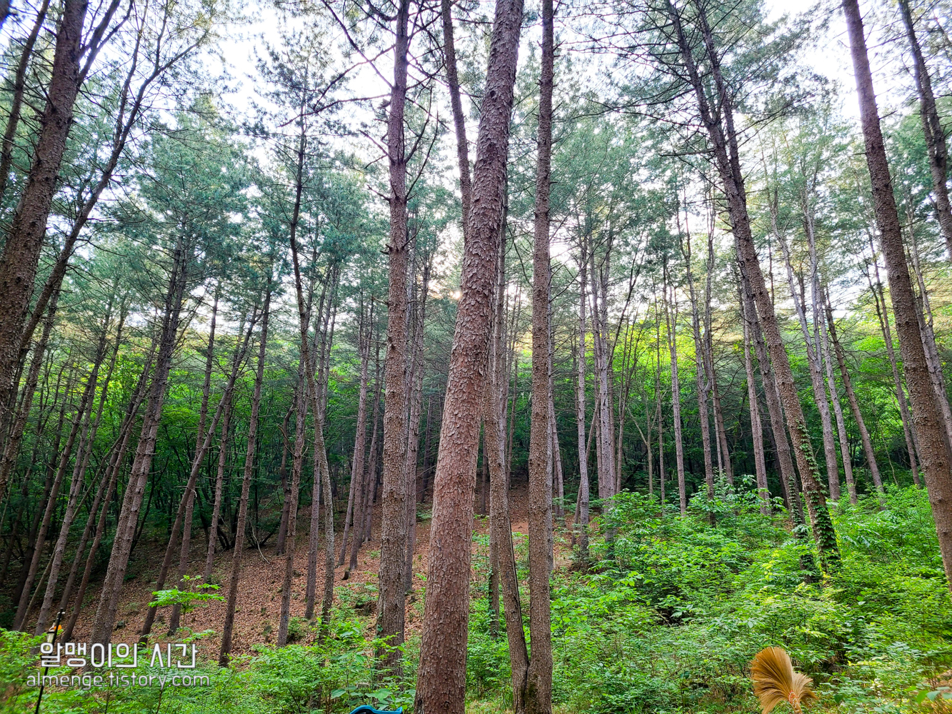 이틀 연속을 잣나무 숲에서 야영하다보니