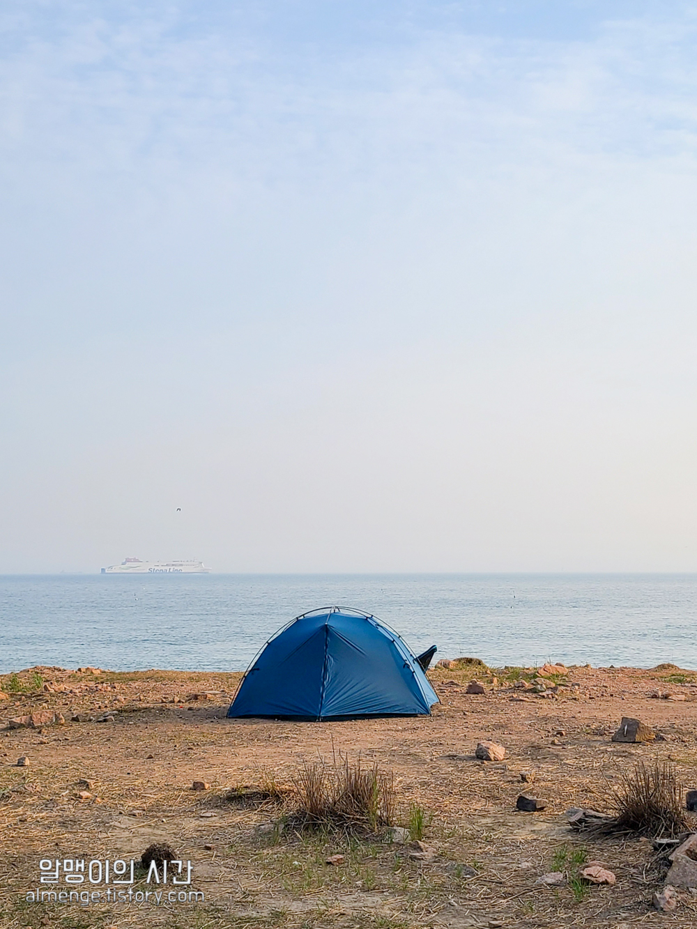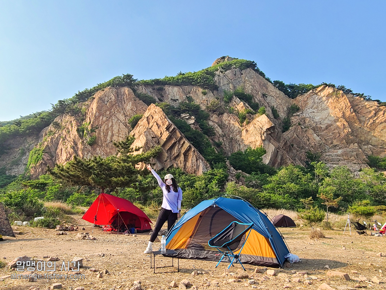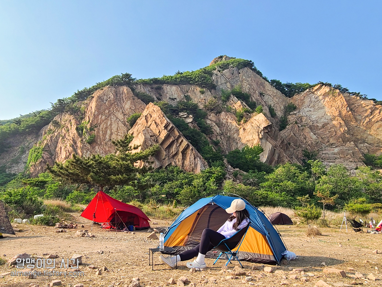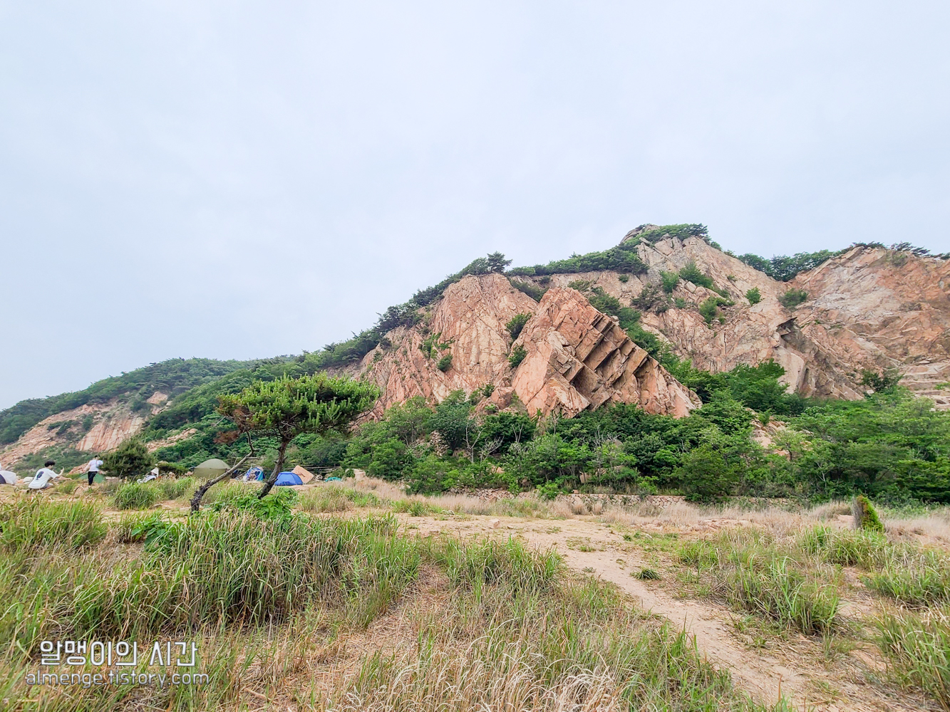 나무그늘 밑을 선호하는 사람, 바람 막아줄 돌담이나 수풀 뒤를 선호하는 사람, 바다앞 1열 자리를 선호하는 사람 등등.... 근데 내가 토요일 오후 2시 40분쯤 도착했을 땐 바다앞 1열 자리가 가장 먼저 차 있었고 바위 절벽에 가까울수록 텐트가 거의 없었다가 사람들이 계속 오고 저녁이 되니 바위 절벽쪽 뒷 자리도 점점 찼었음.
