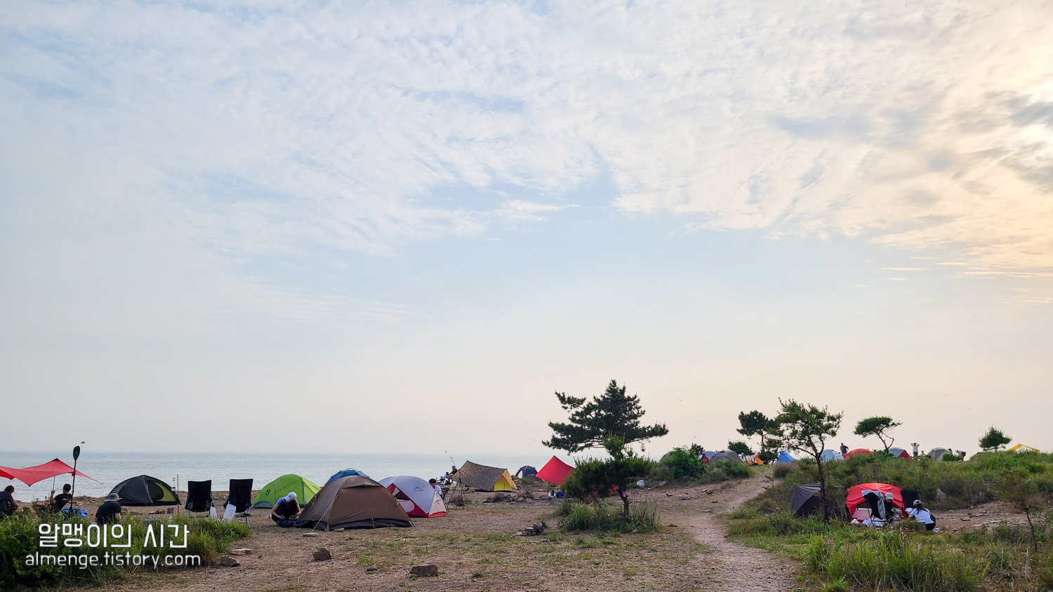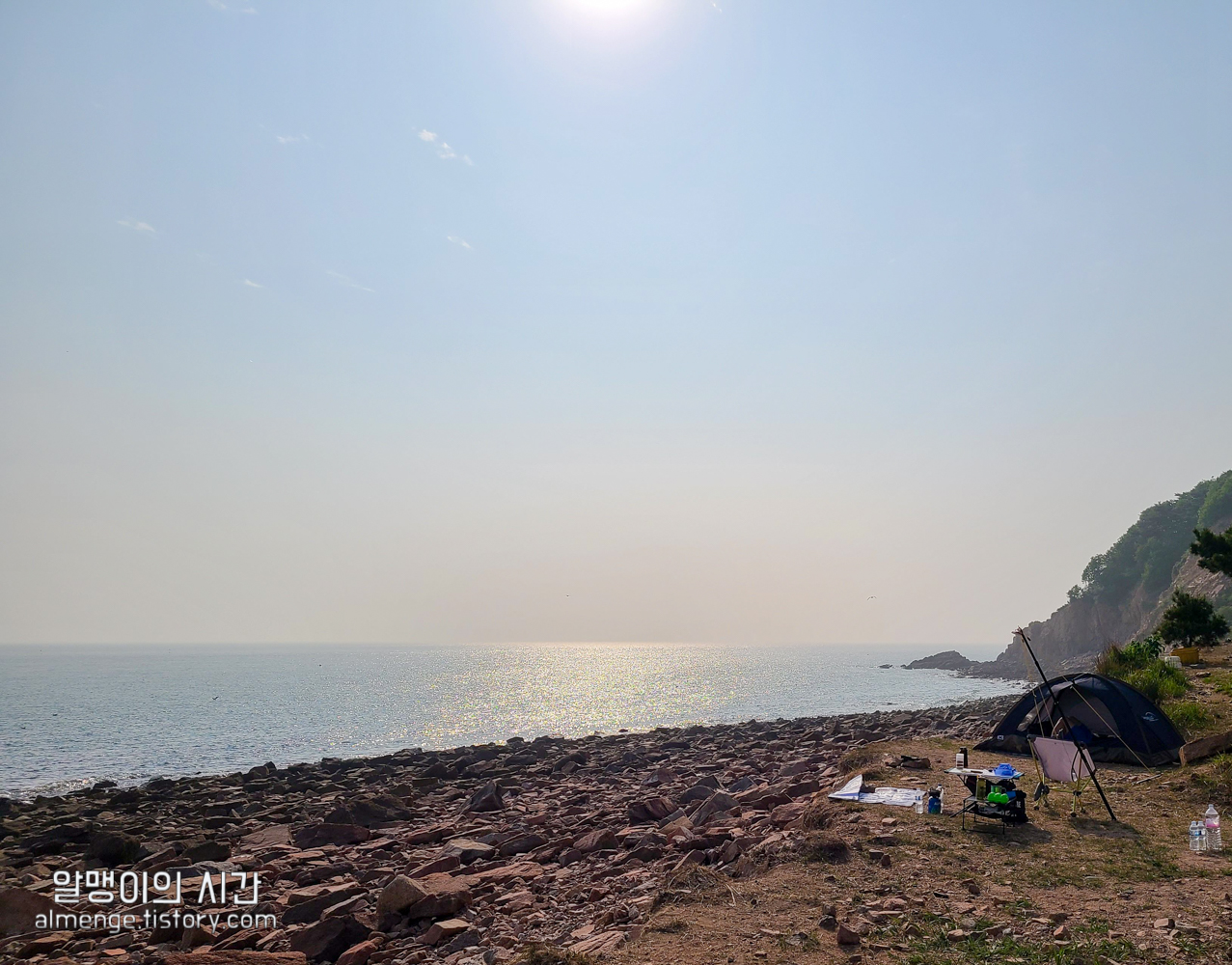 토요일 오후 2시 40분에 도착한거면 나름 일찍 도착했다고 생각했는데 이미 안쪽 바다 앞 1열은 15동 이상의 텐트가 빽빽히 점령중이었고ㅠㅠㅠ 담날 아침에 철수할 때 보니 아침 10시부터 오는 사람들도 있더라 ㅋㅋㅋㅋ