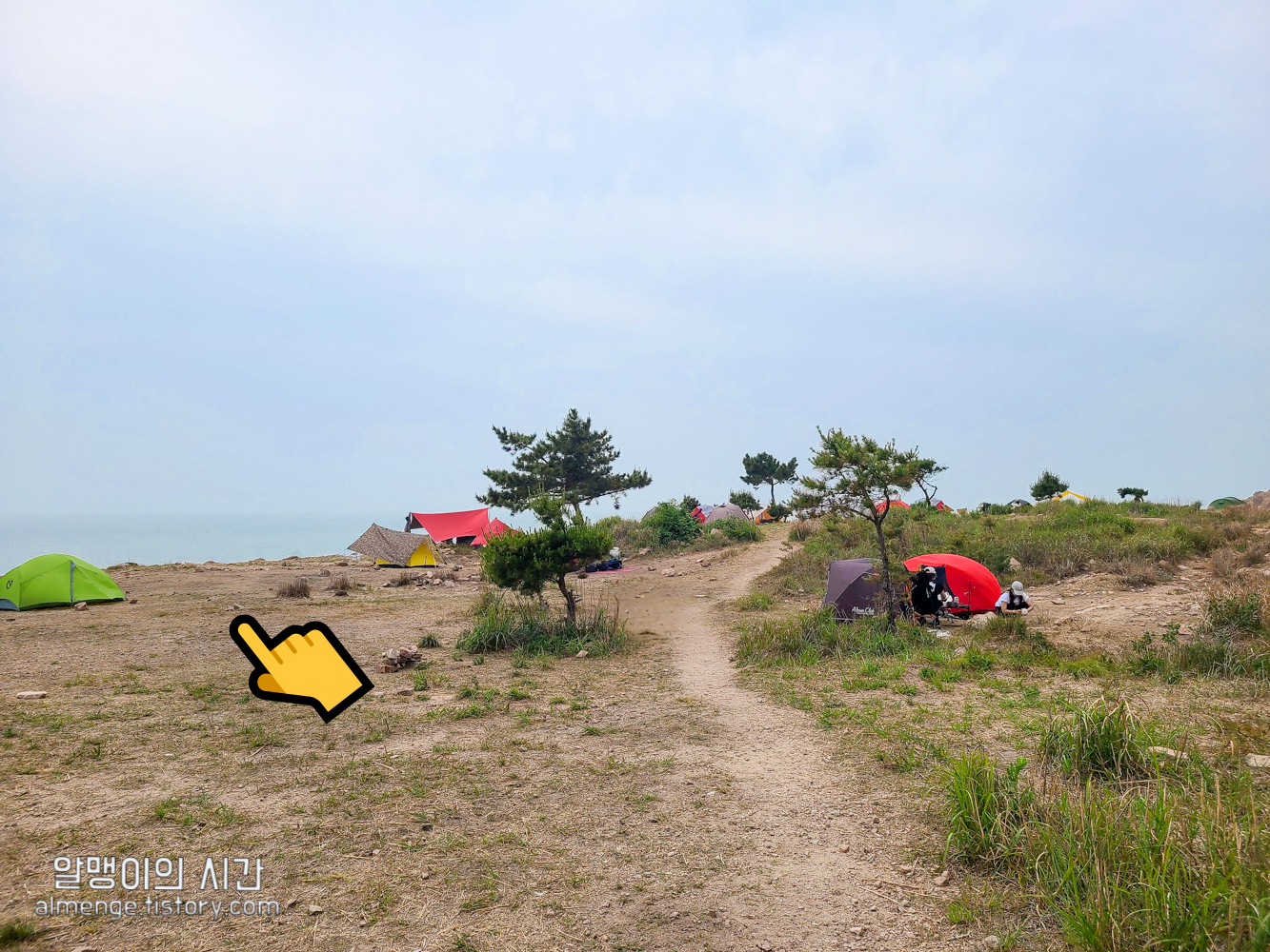 내 생각엔 봄, 가을엔 바다 1열 자리가 좋을 듯 하고 여름엔 나무 아래가 현명할 듯. 근데 나무들이 키작은 소나무들이라 그늘 면적이 크진 않다. 요즘같은 여름엔 햇볕 쨍할 때는 타프 가져가는 게 좋을 것 같음!