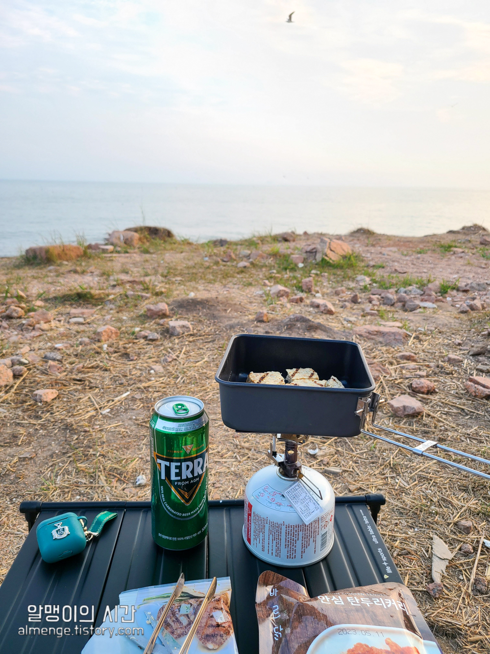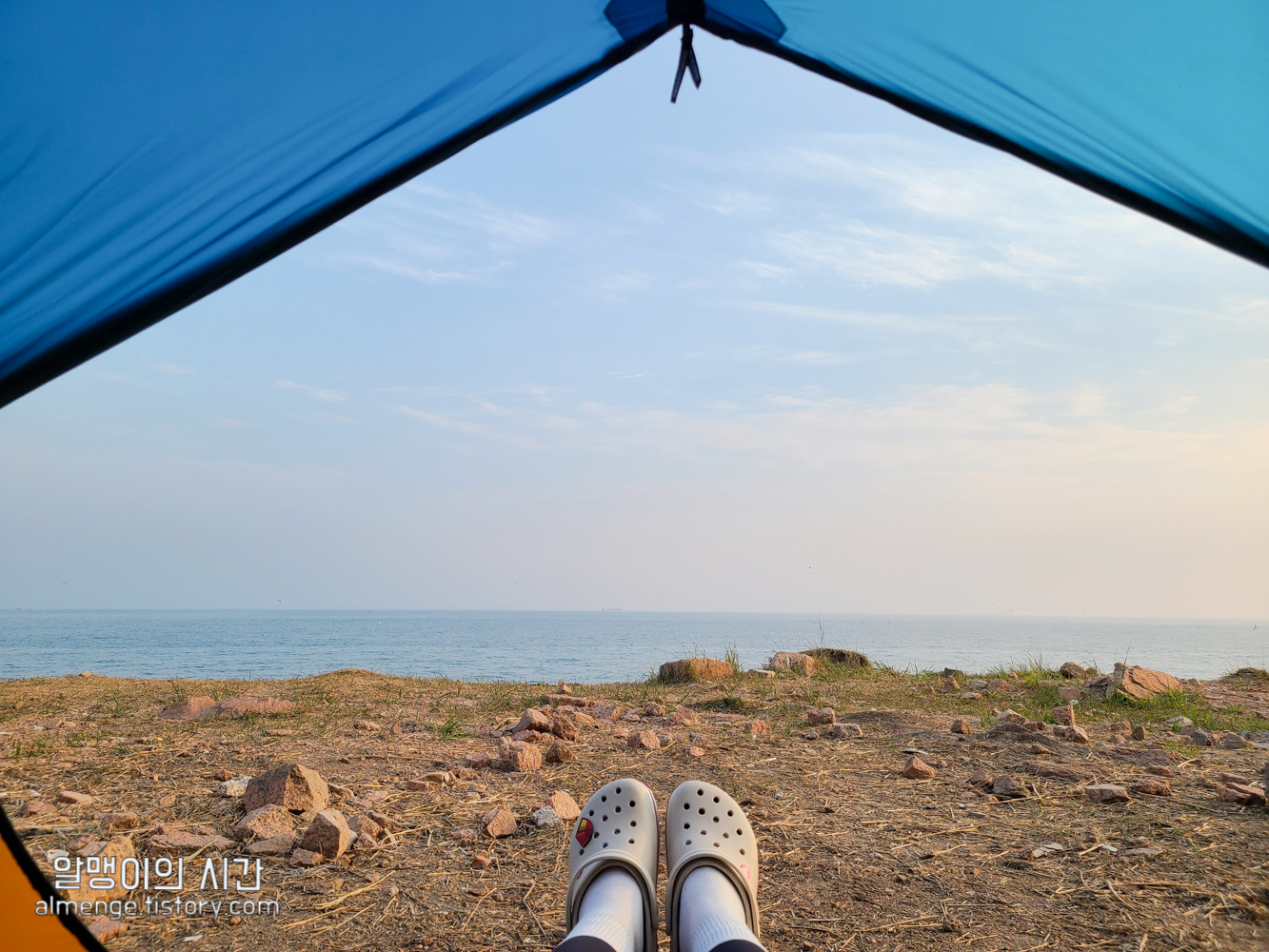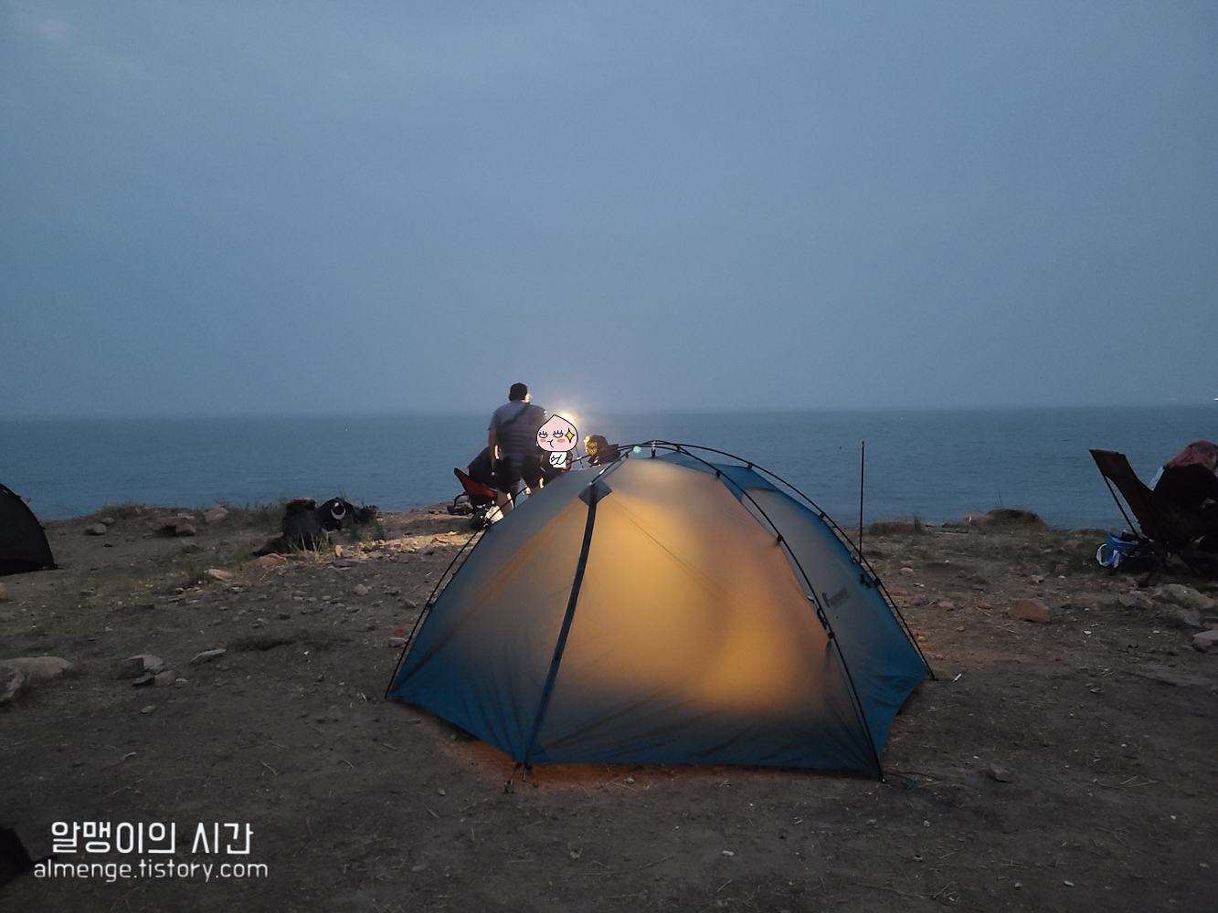엇 근데 바다 앞 1열에 딱 텐트 여유 있게 2개 정도 칠 자리가 비어있었다. 그렇게 다닥다닥도 아니고 ㅎㅎ 근데 여기서 피어나는 의심증 ㅋㅋㅋㅋ 좋아보이는데 왜 비어있지? 뒷자리 사람들은 왜 여기에 피칭을 안했지? 하고 그리로 가는 순간 들려오는 아름다운(?) 블루투스 스피커 음악소리