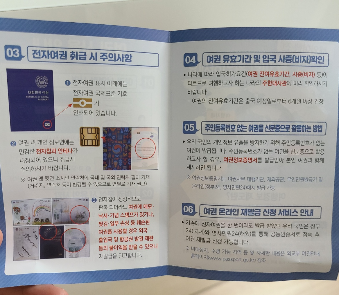 근데 발급 받고 보니 여권이 넘 가볍고 얇아서 ㅋㅋㅋ 그냥 58면짜리 할걸 그랬나 싶긴 했어요. 58면도 그리 무거울 것 같진 않으니 3000원 차이면 58면 짜리도 괜찮을 것 같아요.