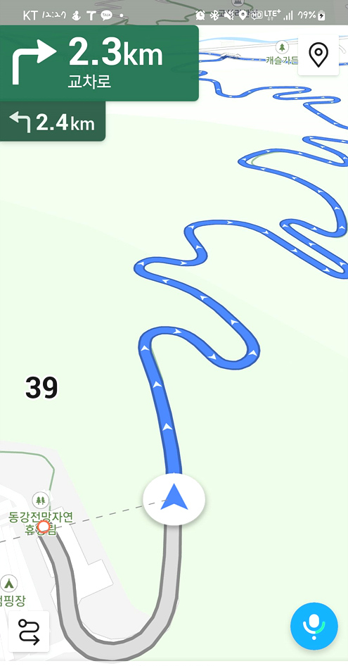 이런 구불구불한 산길 도로를 꽤 올라가야 했던 것