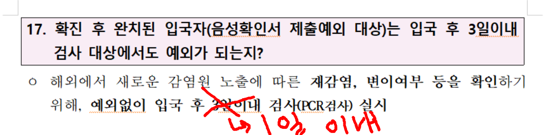 원랜 3일 이내 검사였는데 7월 코로나 재확산으로 인해 정부에서 새로 발표한 방역지침에서 3일이내에서 1일 이내로 바뀜.