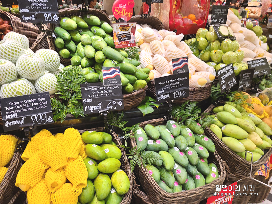카오카무(족발덮밥), 각종 국수, 각종 볶음밥류, 튀김, 팟타이, 망고 스티키라이스, 꼬치류, 벌레튀김, 코코넛, 카놈크록, 카놈브앙, 두리안 등 열대과일 등등등