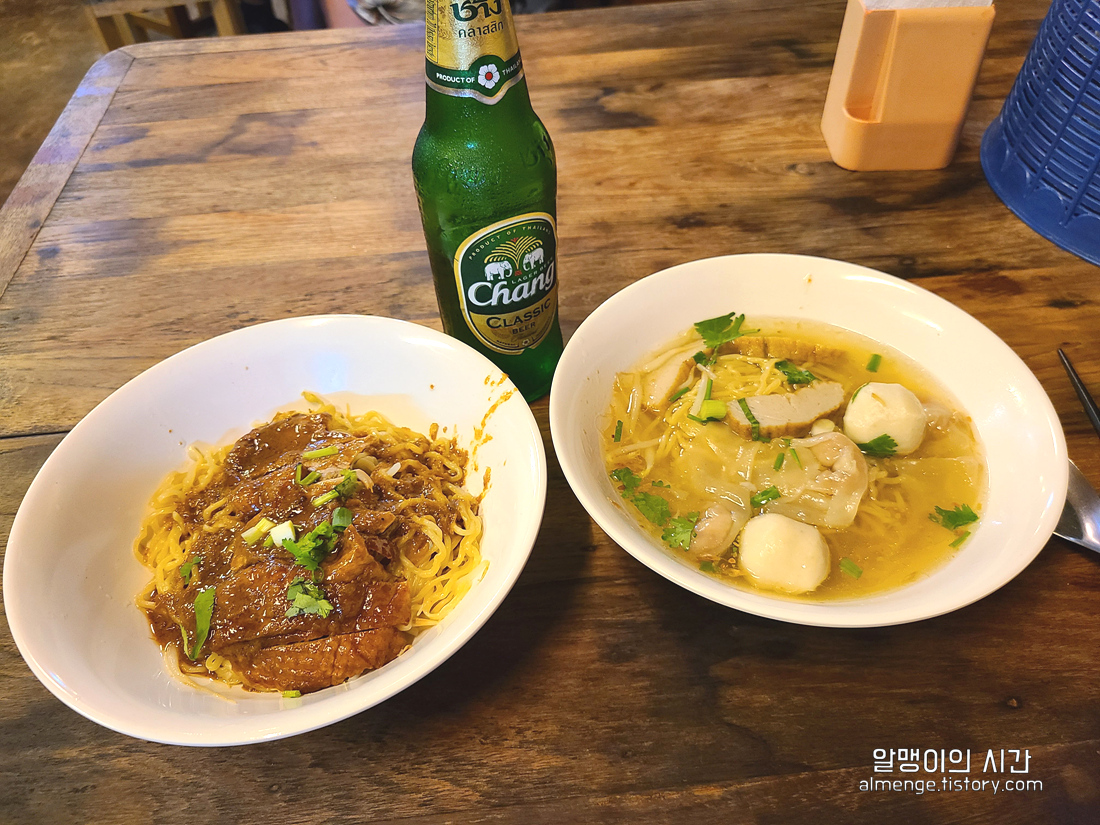 포크 팟타이 + 큰사이즈 창맥주1 해서 겨우 130바트ㅎㅎ