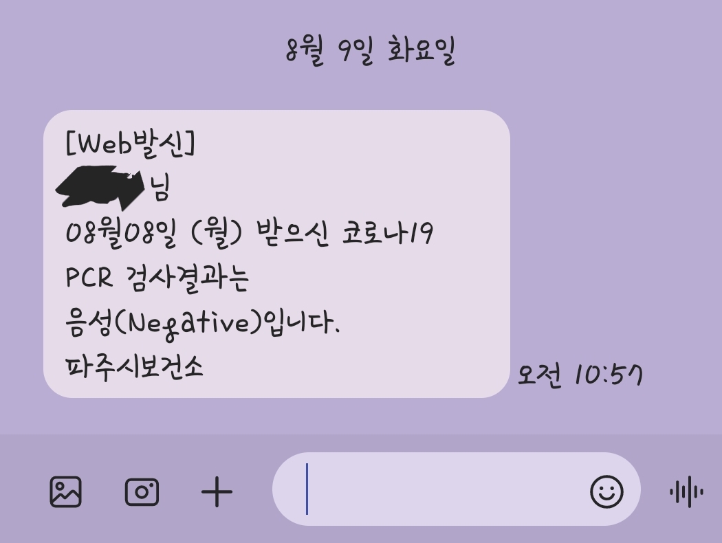 해외여행을 마친 후 한국에 입국하면 방역 당국에 입국사실이 넘어가게 되고 본인 거주지역 관할 보건소에서 검사 받으라고 문자가 옵니다. 저도 8월 7일 (일) 오전에 입국했는데 그날 오후에 귀신같이 문자가 오더라구요 ㅎㅎ (일요일에도 열일하는 보건소 직원분들 힘내세요! ㅠㅠㅠ)