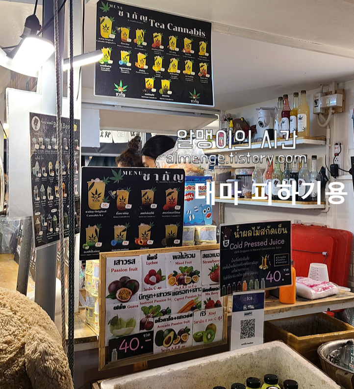 실제로 방콕과 꼬따오를 여행하던 중에 대마초 판매점도 많이 봤고, 카오산로드 같은데선 길거리 좌판이나 트럭에서 파는 것도 봤는데요. 이렇게 딱 그림과 문구가 써 있어 티가 나거든요.
