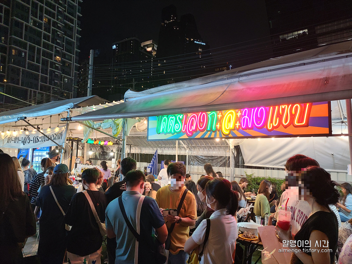 여긴 최근에 방콕 시내에 생긴 야시장인데 방콕 젊은이들에게도 핫플이라길래 한번 가봤는데요. 규모가 작은 편이라 둘러보는 건 한 시간이면 충분히 둘러보더라구요.