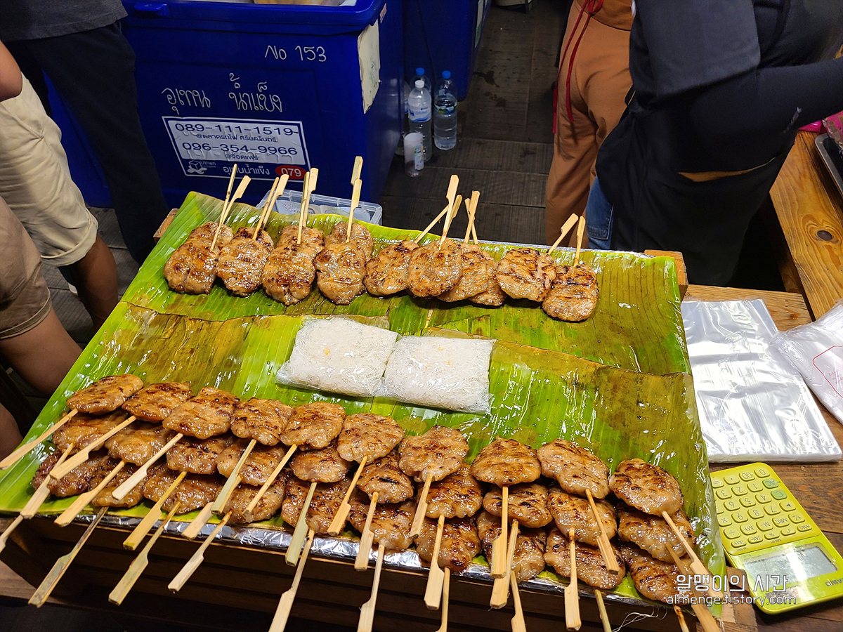 야시장 무삥(돼지고기 꼬치) 1개 10~15바트