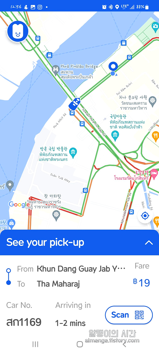 저는 대중교통이 불편한 카오산 로드, 왕궁 근처를 돌아다닐 때 무브미를 3번 이용했는데 꽤 만족했어요.