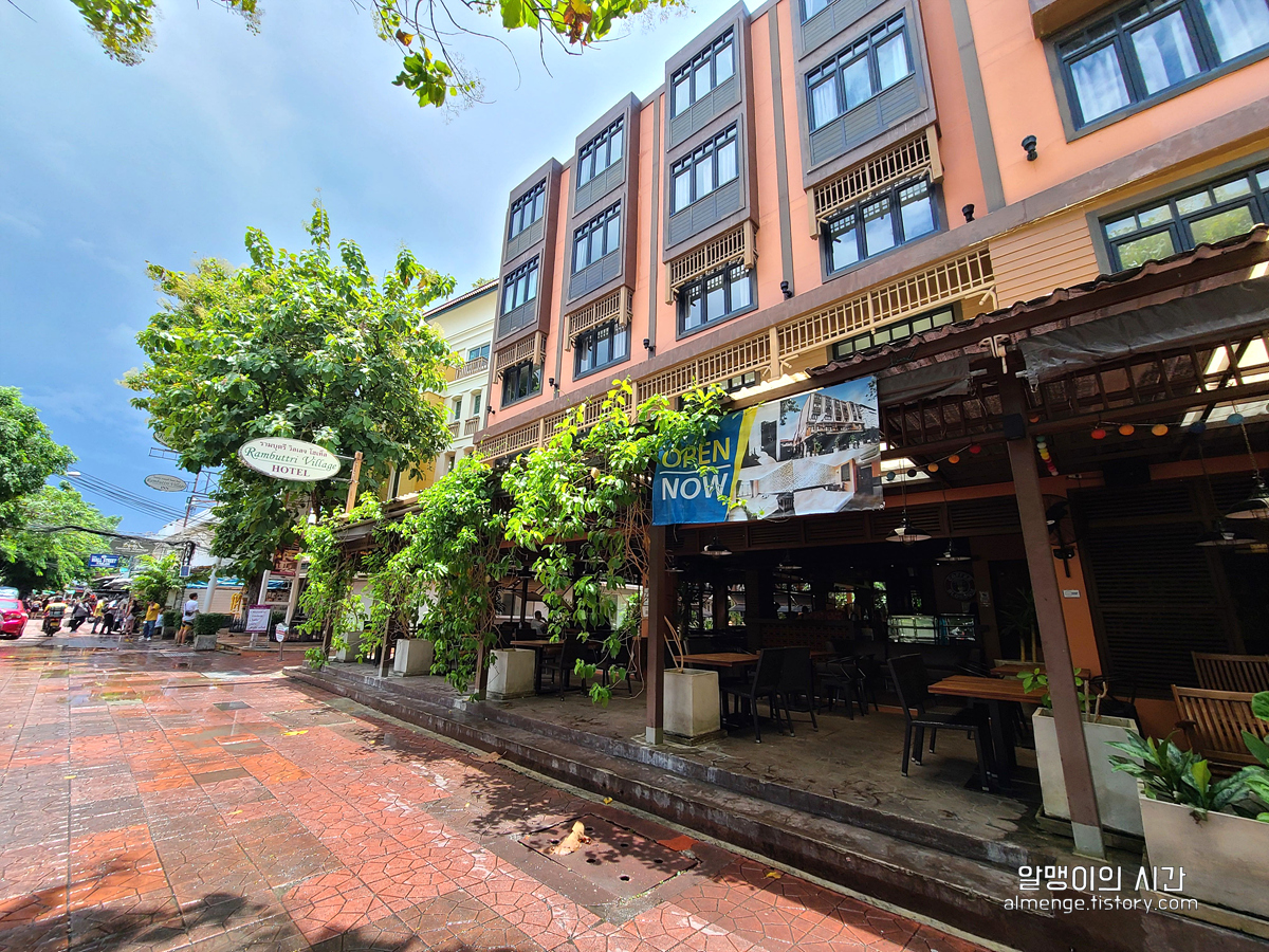 이 곳에서 유명한 숙소 람부뜨리 빌리지도 지나치고ㅎ 코시국 전엔 가성비 숙소이자 자유여행자 바이브를 느낄 수 있으면서도 조식이 잘 나오는 곳으로 유명해 인기 많은 곳이었는데 현재는 코시국 전 분위기가 아직 회복되지 않았다길래 예약하려다 포기한 곳