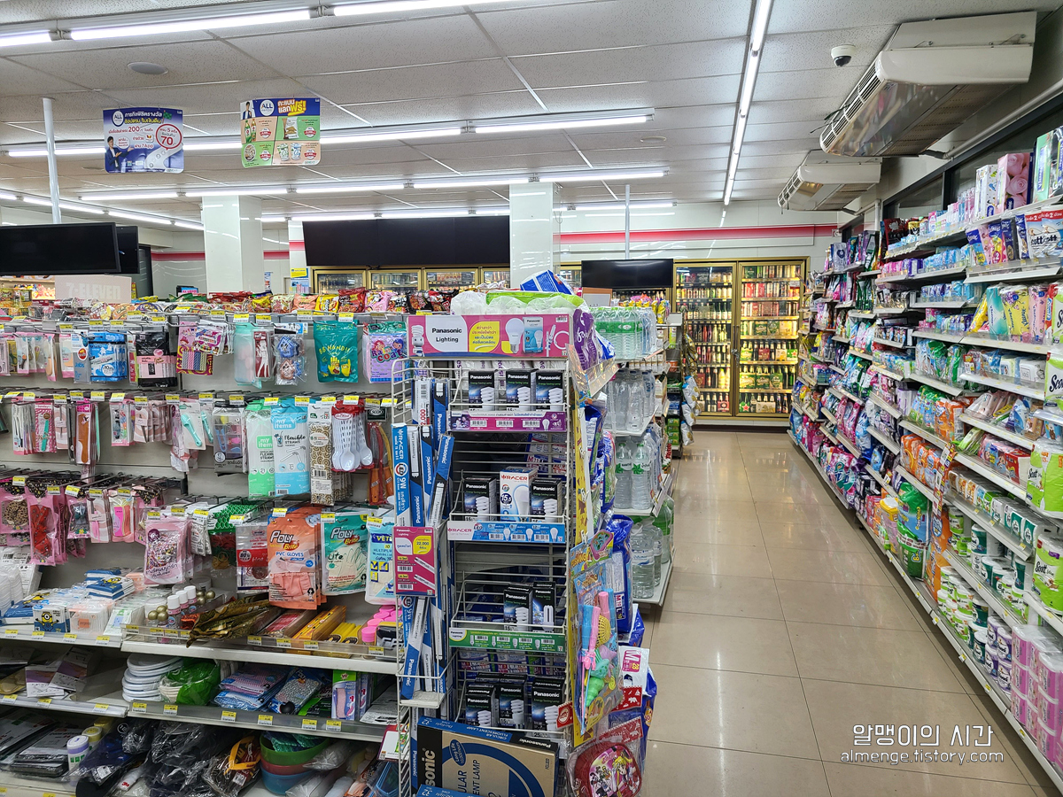 구호식량 사서 무사히 컴백. 태국 편의점 관련해서는 별도의 포스팅으로 자세하게 썼으니 궁금하신 분은 아래 링크 참고! 사먹은 음식 후기도 자세히 써놨다.