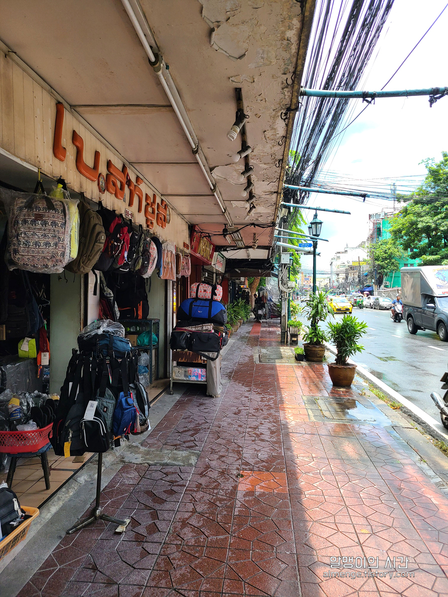 거리를 쭉쭉 걷는 것 만으로도 기분 좋은 여행 첫 째날 ㅎㅎ 거리 사진을 이렇게 많이 찍어놓은 것만 봐도 첫날의 설렘이 느껴짐. 이제 거의 다왔다. 카오산로드 한인 여행사인 동대문 여행사도 지나치고