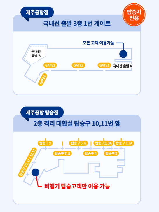 2. 제주공항 탑승점(국내선 격리대합실 2층 10, 11번 탑승구 앞)