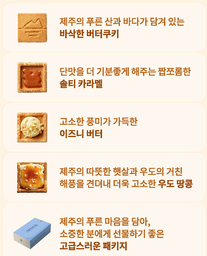 제주 마음샌드는 제주공항 내 파리바게트에서만 파는 버터 쿠키인데요. 오직 제주 공항 파바에서만 팔기 때문에 희소성이 있어 제주도 여행하는 분들에게 핫한 기념품이에요.