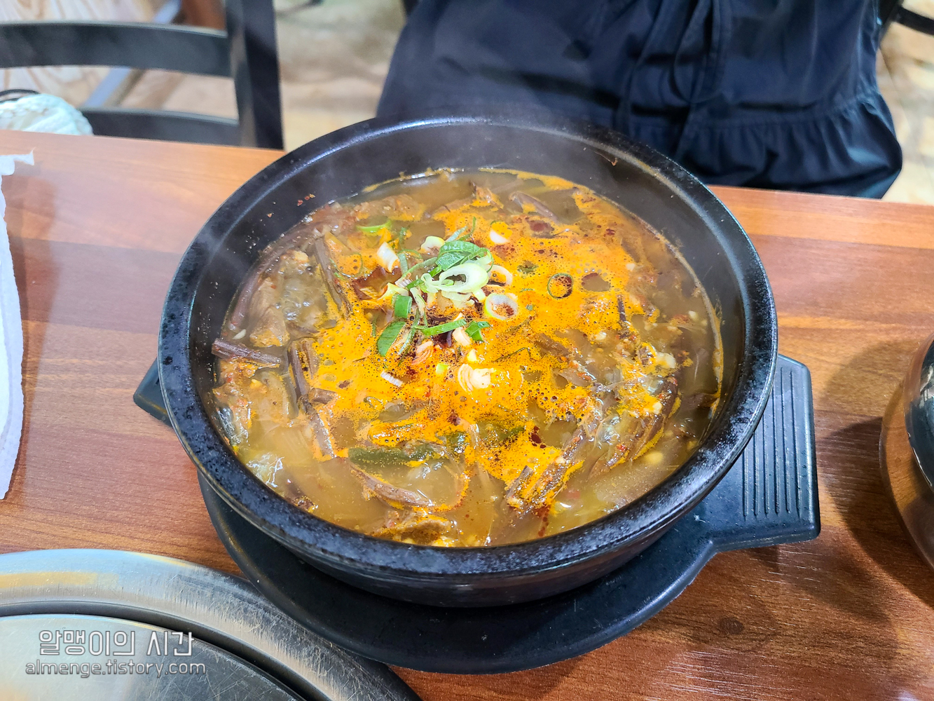 얼큰 칼칼한 고사리 육개장 느낌의 맛이었어요. 무가 많이 들어가서 국물이 시원하더라구요. 엄마가 시킨 소고기 국밥도 좋았지만 개인적으론 제가 시킨 가마솥 곰탕이 더 맛있었네요.
