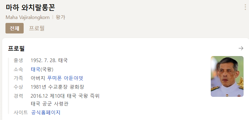 궁금하니 찾아보는 현 태국 국왕 정보. 지폐에 나와계신 것 보단 좀 더 늙으셨다ㅎ