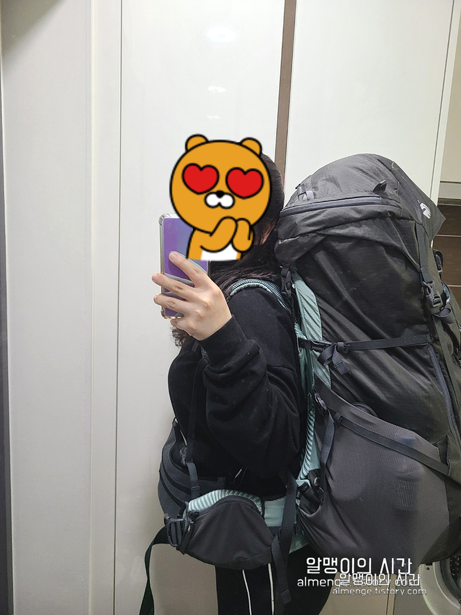 가성비 백패커인 내가 23만원짜리 배낭을 사다니 나름 지출이 컸는데, 옆에 있던 일행들의 입김이 크게 작용했음을 부정할 수가 없다 ㅋㅋㅋ ㅠㅠ 친구 따라 강남간다더니, 내 혼자였으면 절대 안샀을텐데 옆에서 자꾸 부추기니 어느덧 결제하고 있더라 ㅎㅎ