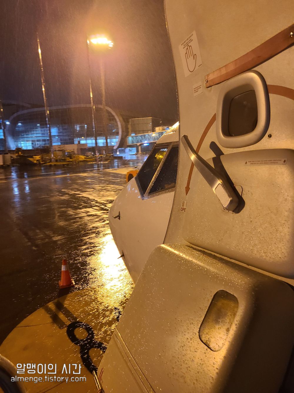 제주 당일치기 마지막 식사로 흑돼지를 배부르게 먹은 모녀는 호우주의보를 뚫고 저녁 마지막 비행기를 타고 돌아왔어요. 아침부터 저녁까지 알찼던 제주 서쪽 당일치기 여행!
