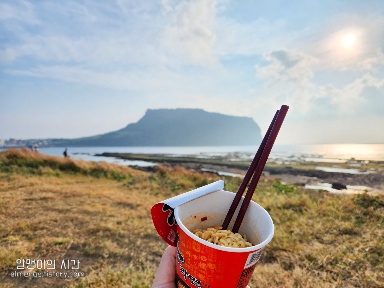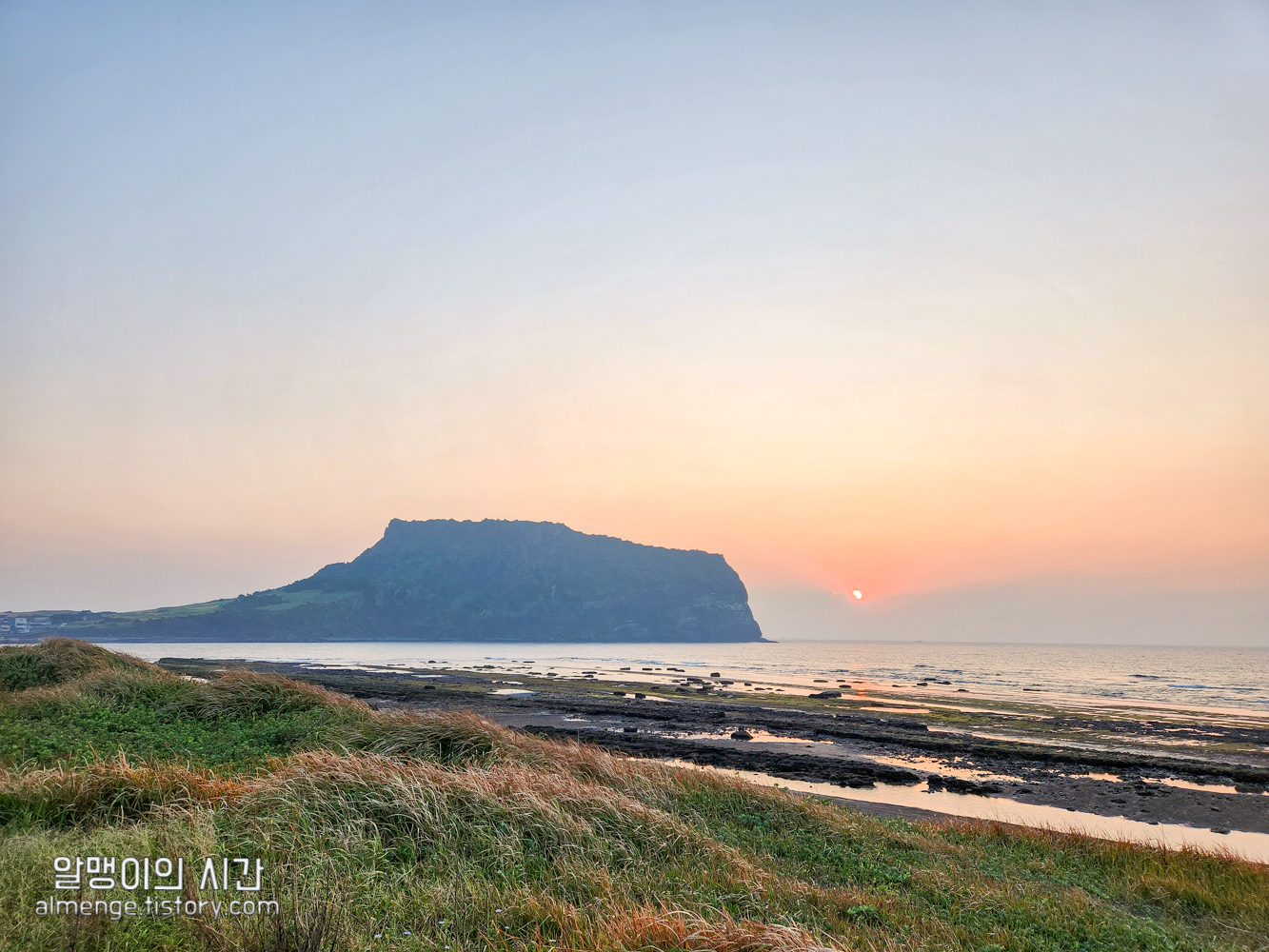 어느덧 광치기 해변으로 진입. 성산 일출봉은 역시 멀리서 봐야 멋짐 ㅎㅎ옛날에 한여름에 성산 일출봉 올라가다 힘들어 죽을뻔한 후로 제주도 가면 굳이 들러보려 하지 않았던 성산일출봉이었는데 안올라가고 멀리서 보니 얼마나 예뻐! ㅋㅋㅋ