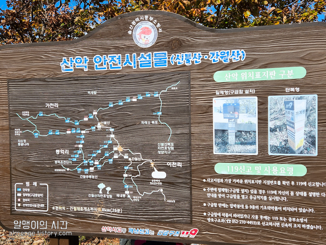 이러했음. 이건 배낭 없이 갔을 때 가볍게 올랐을 때 기준이고, 15kg이상의 박배낭을 메고 오른 우리는 사슴농장에서 신불산 정상까지 총 3시간 정도가 걸렸다. (간월재에서 식사한 시간 제외)