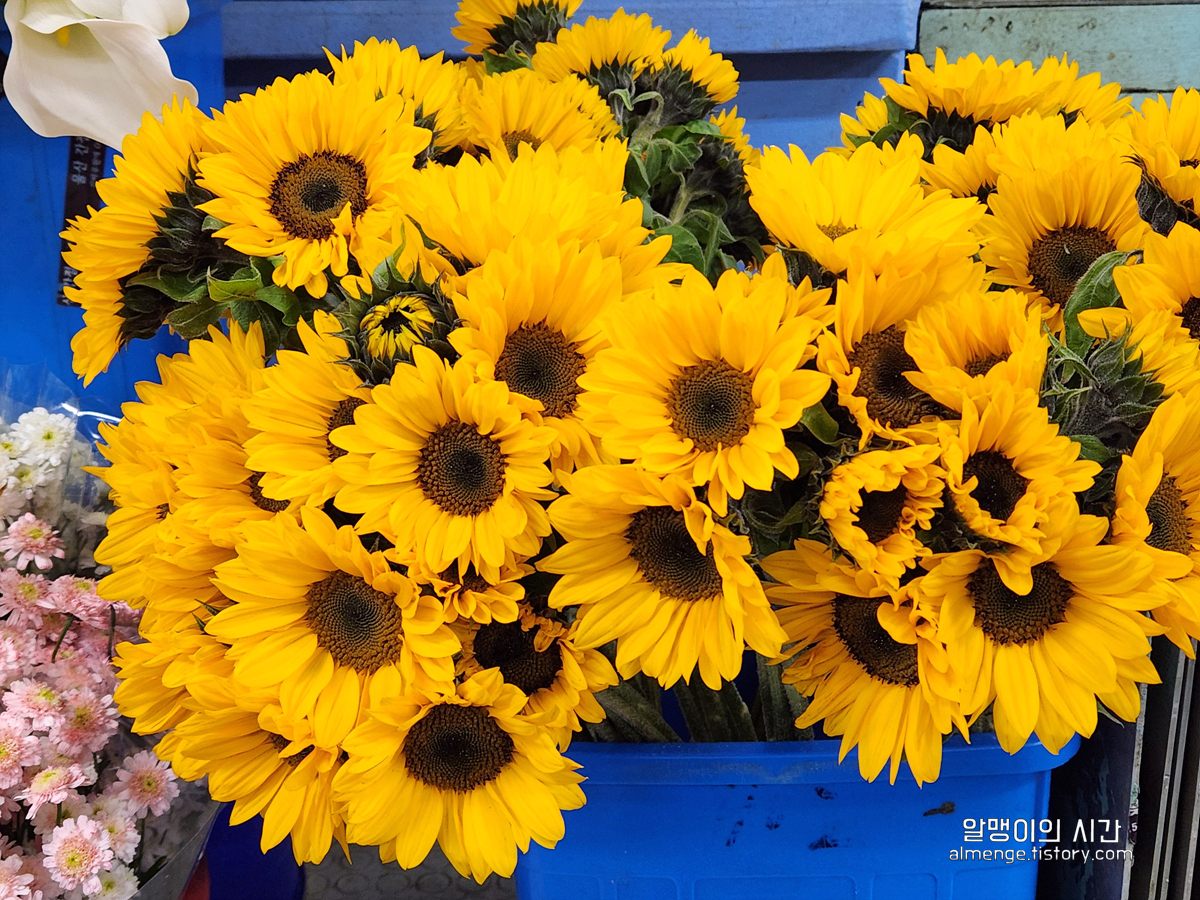 귀여운 사이즈의 해바라기, 그리고 이름 모를 예쁜 꽃 들도 많았어요. 가게들을 돌아다녀보니 가격을 붙여 놓은 곳도 아주 가끔 있긴 하지만 대부분은 가격이 게시되어 있지 않아서 상인분께 물어봐야 알 수 있는 경우가 많았어요.