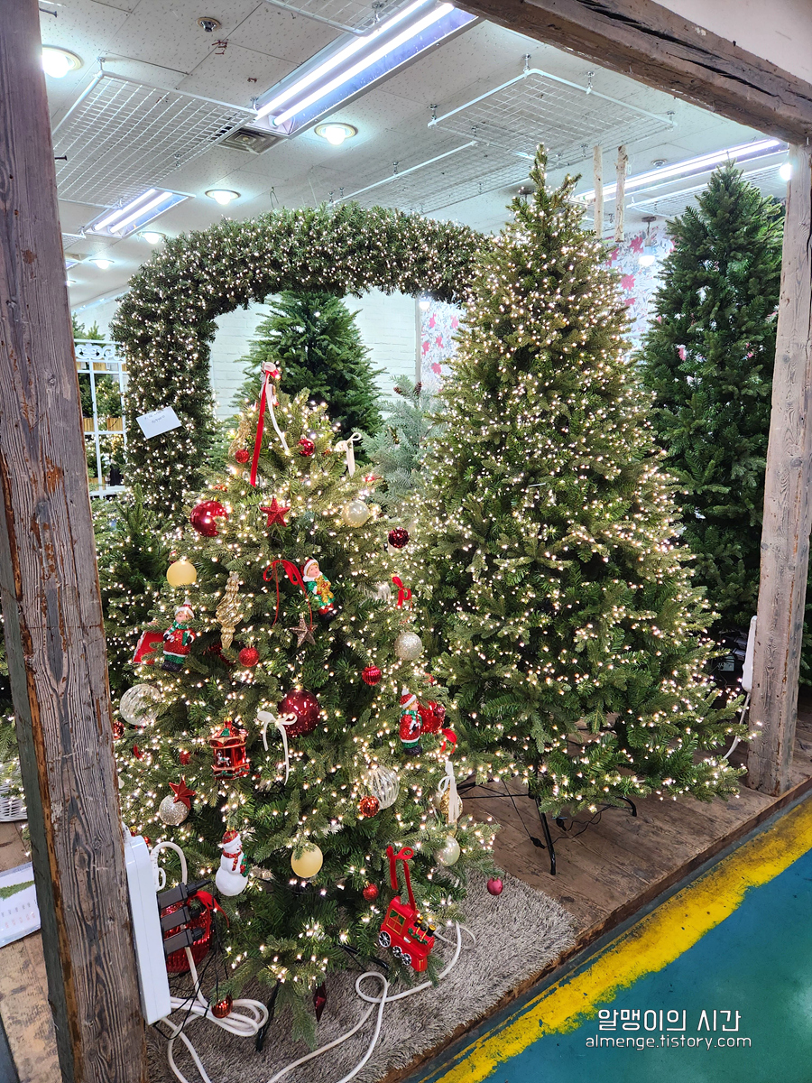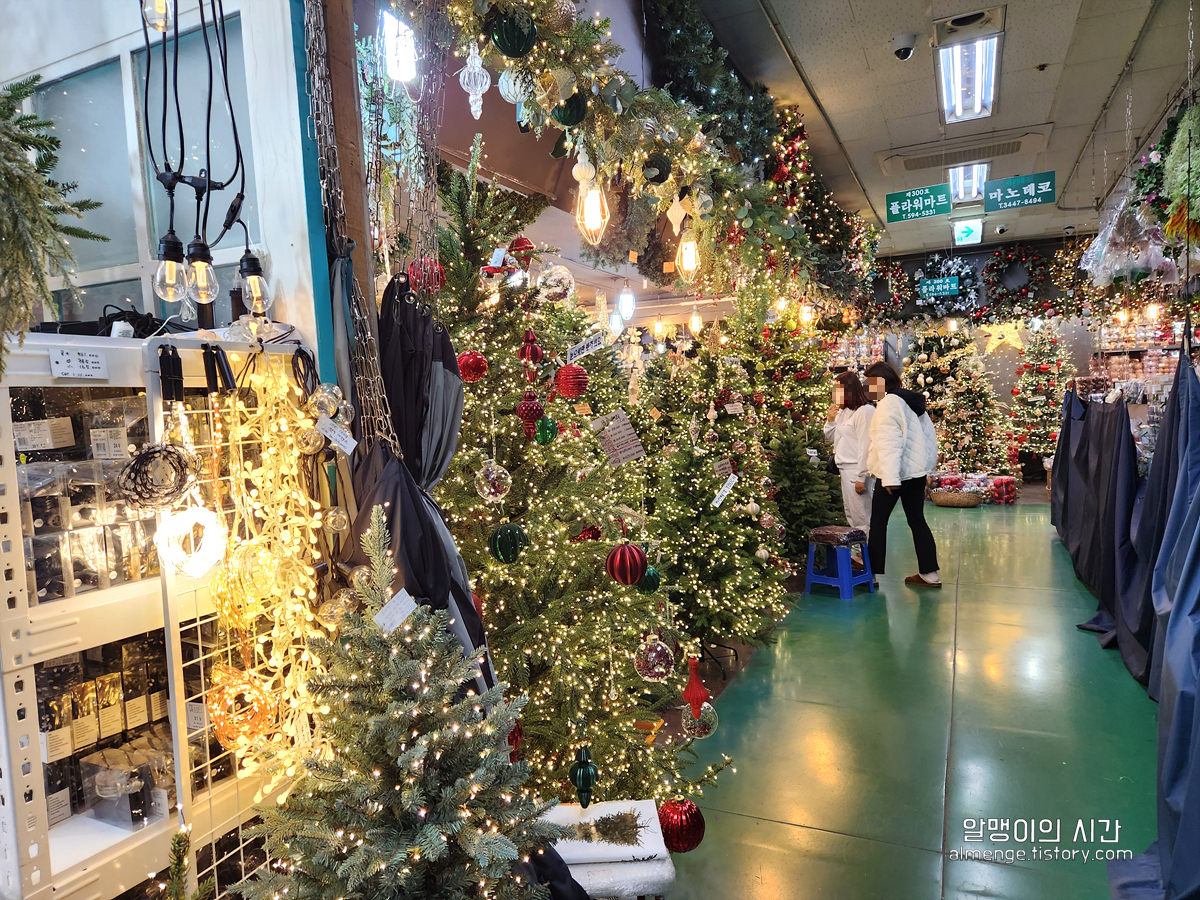 유리문 입구로 들어가면 초반엔 조화코너가 나오는데요. 세상에 ㅠㅠ 크리스마스 트리랑 오너먼트들이 넘나 영롱하게 빛나고 있더라구요. 미니 사이즈부터 특대 사이즈까지 다양하고 어찌나 예쁘게 꾸며 두셨는지 그 자리에서 하나 사고 싶어졌어요