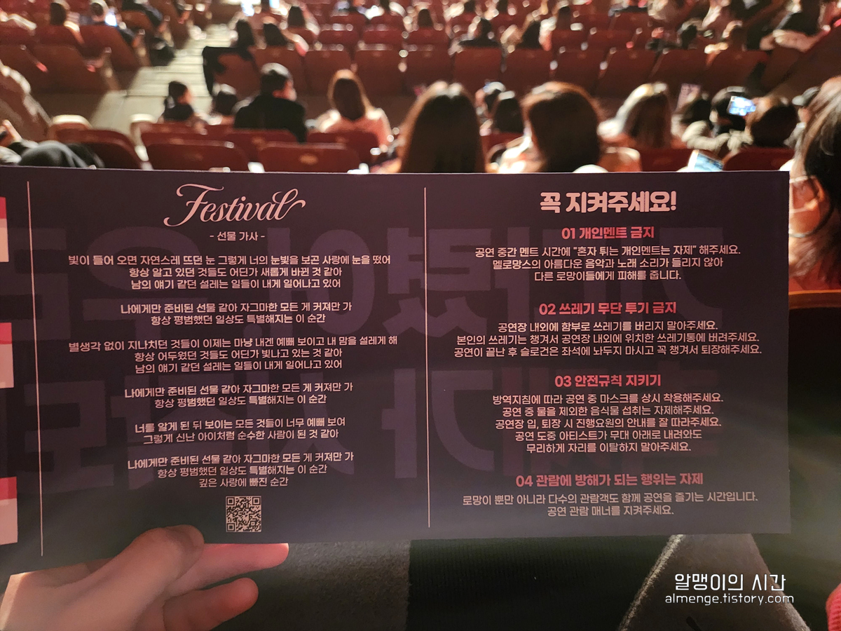 그럼 오늘은 2022~2023 멜로망스 Festival 전국투어 콘서트 서울 후기 및 올림픽공원 올림픽홀 관람석 및 주차 정보에 대해 써볼게요!