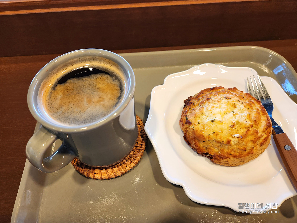 크림치즈 갈릭 스콘 하나 아메리카노 한 잔 주문!