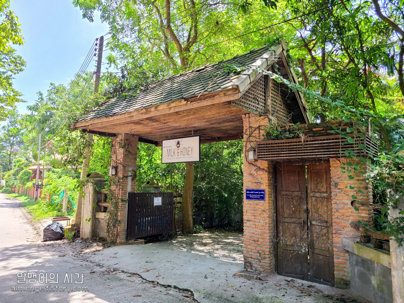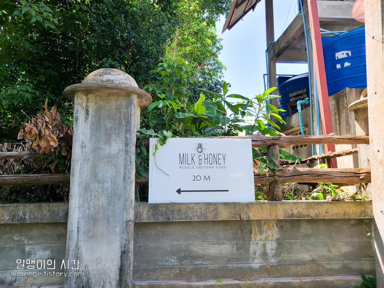 밀크&허니는 매핫부두에선 도보 8분 정도. 내가 지낸 숙소에서도 그 정도 걸렸는데, 가는 길이 오르막길이라 실제론 쪼꼼 더 걸렸다. 다들 오토바이 타고 씽씽 달리는데 나만 갓길 뚜벅이 ㅎㅎ