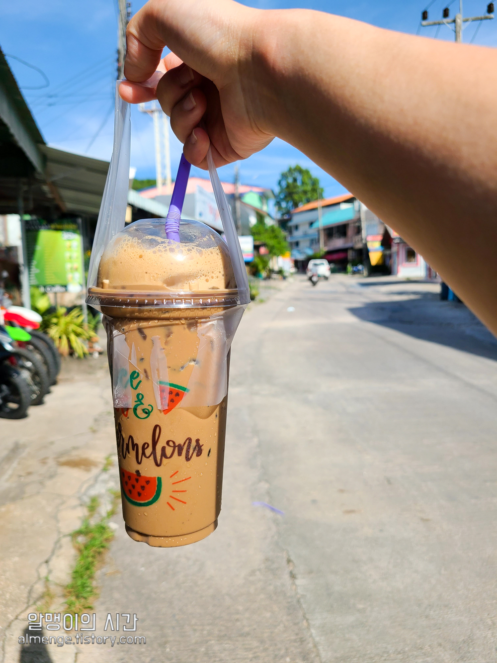 동남아에서 한낮에 땡볕에서 오래오래 걸으려면 꾸준한 수분+당분 보충(?)은 필수기에 숙소 근처에서 달달한 아이스커피 공수해서 숙소 가는 길.