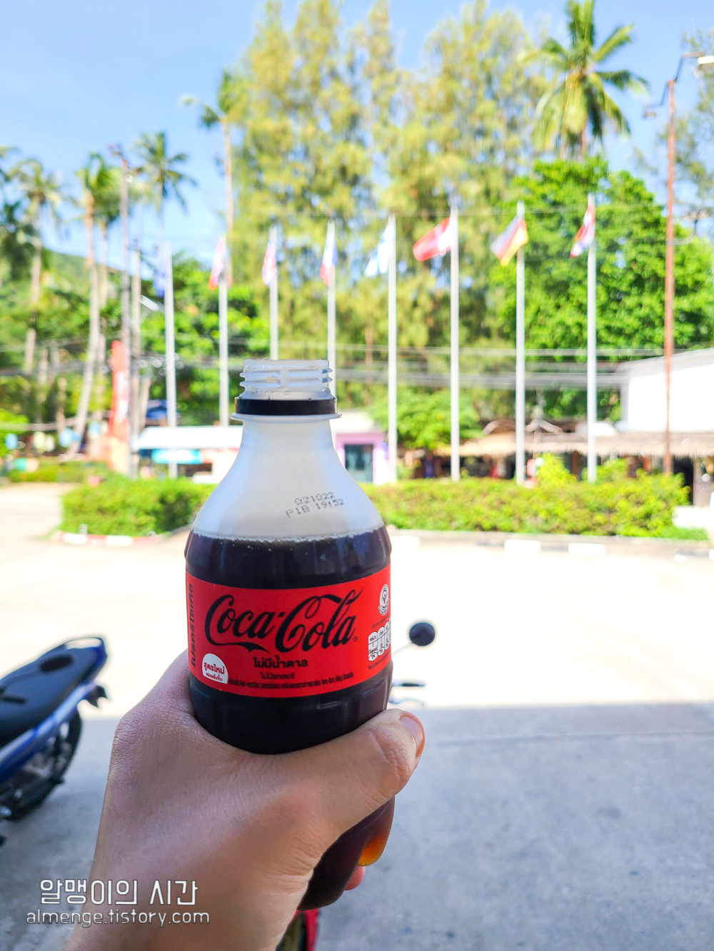 태국 갈때 손선풍기요? 필요 없음. 그냥 가까운 세븐 일레븐 가서 3분만 있다 나오시길. 여기가 천국이다. 목말라서 급 사먹은 뚱콜라. 태국에선 코카콜라 작은 뚱패트 하나 17바트. (600원)