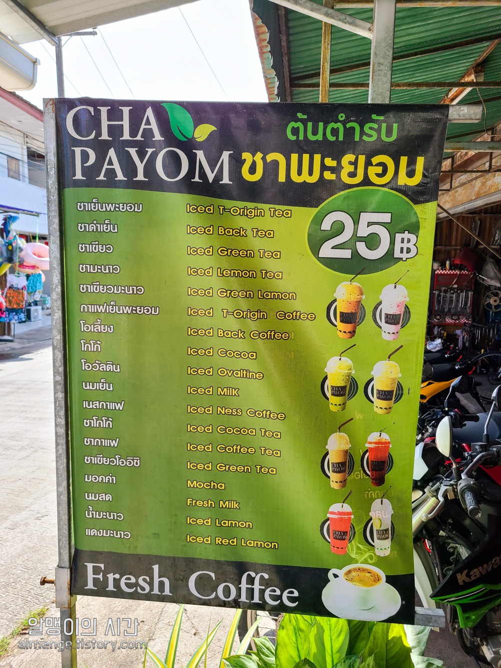 숙소 근처에 있던 Cha Payom 이라는 곳인데 25바트~30바트 (890원~1100원)에 거의 벤티 사이즈 이상의 음료&커피를 테이크 아웃 할 수 있어 몇 번 사먹었다.