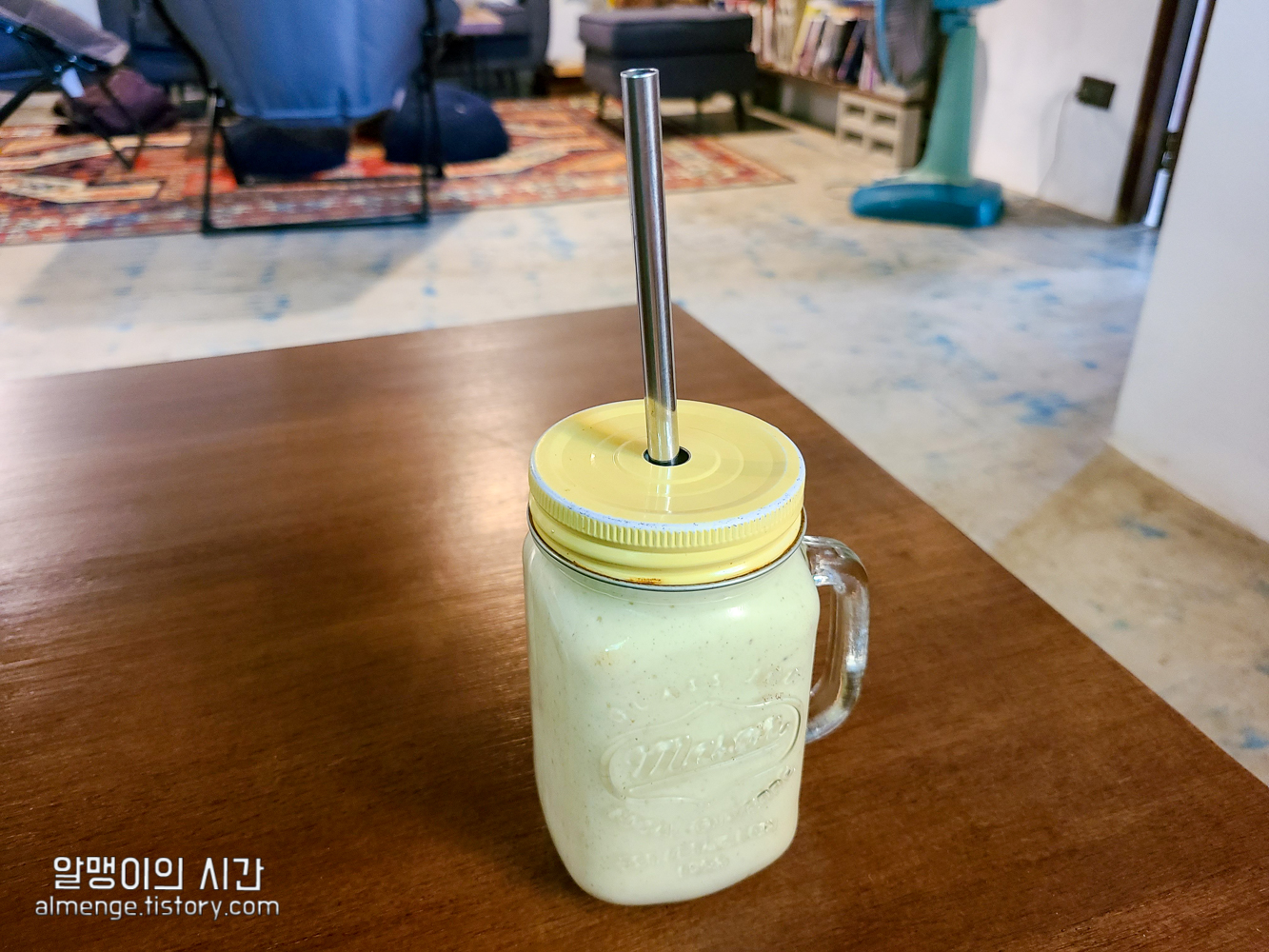 내가 아는 피냐콜라다랑은 달리 알콜도 없고, 그냥 여러 열대과일을 갈아 만든 스무디. 충분히 예상되고 건강해지는 맛!