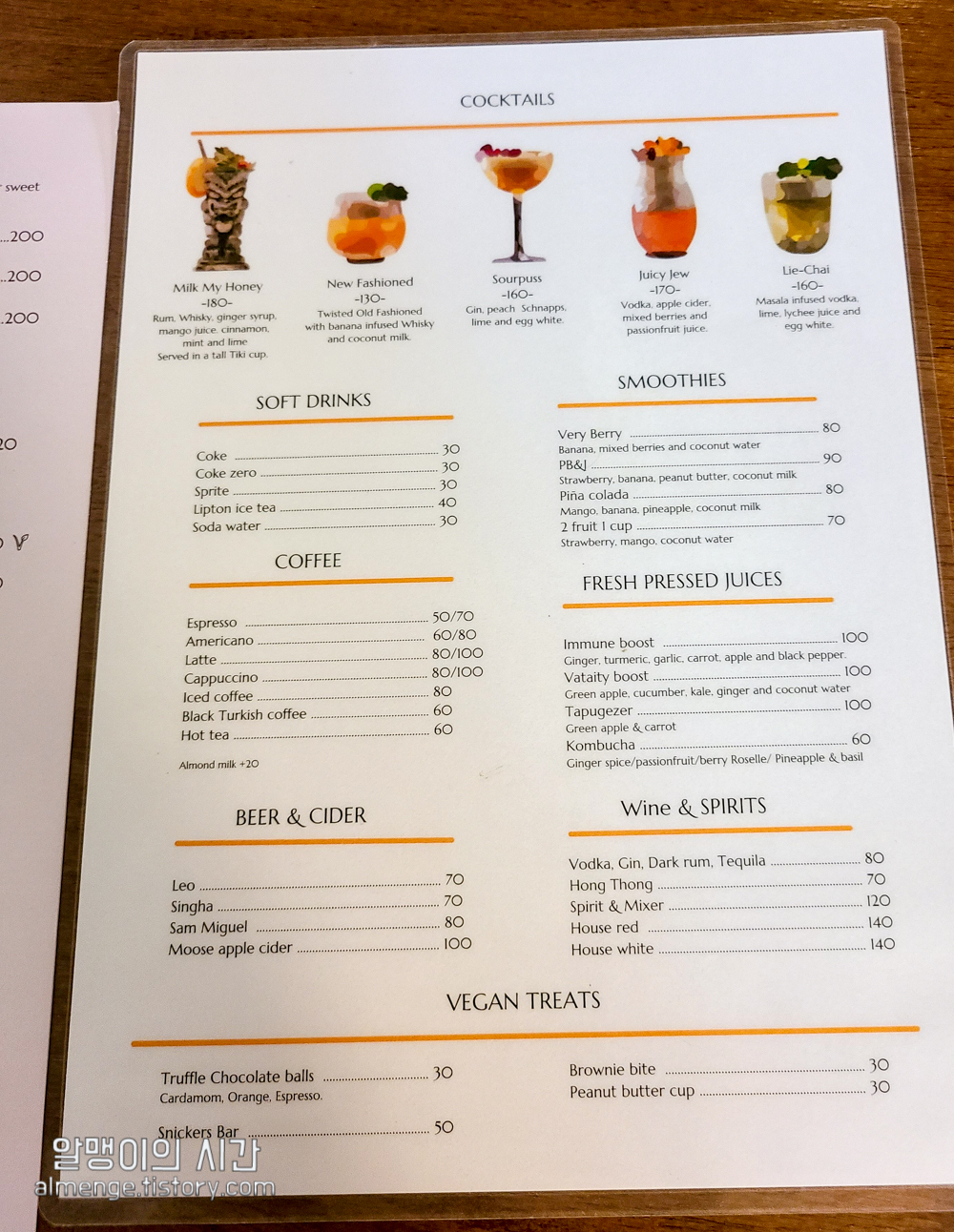 숙소로 돌아와서 바닷물에 절은 몸 씻어내고 2시즈음 점심 먹으러 밀크 & 허니로! 샤워 싹 하고 뽀송한 상태로 나와도 10분 이내에 땀방울 맺히는 동남아 날씨 ㅎㅎ