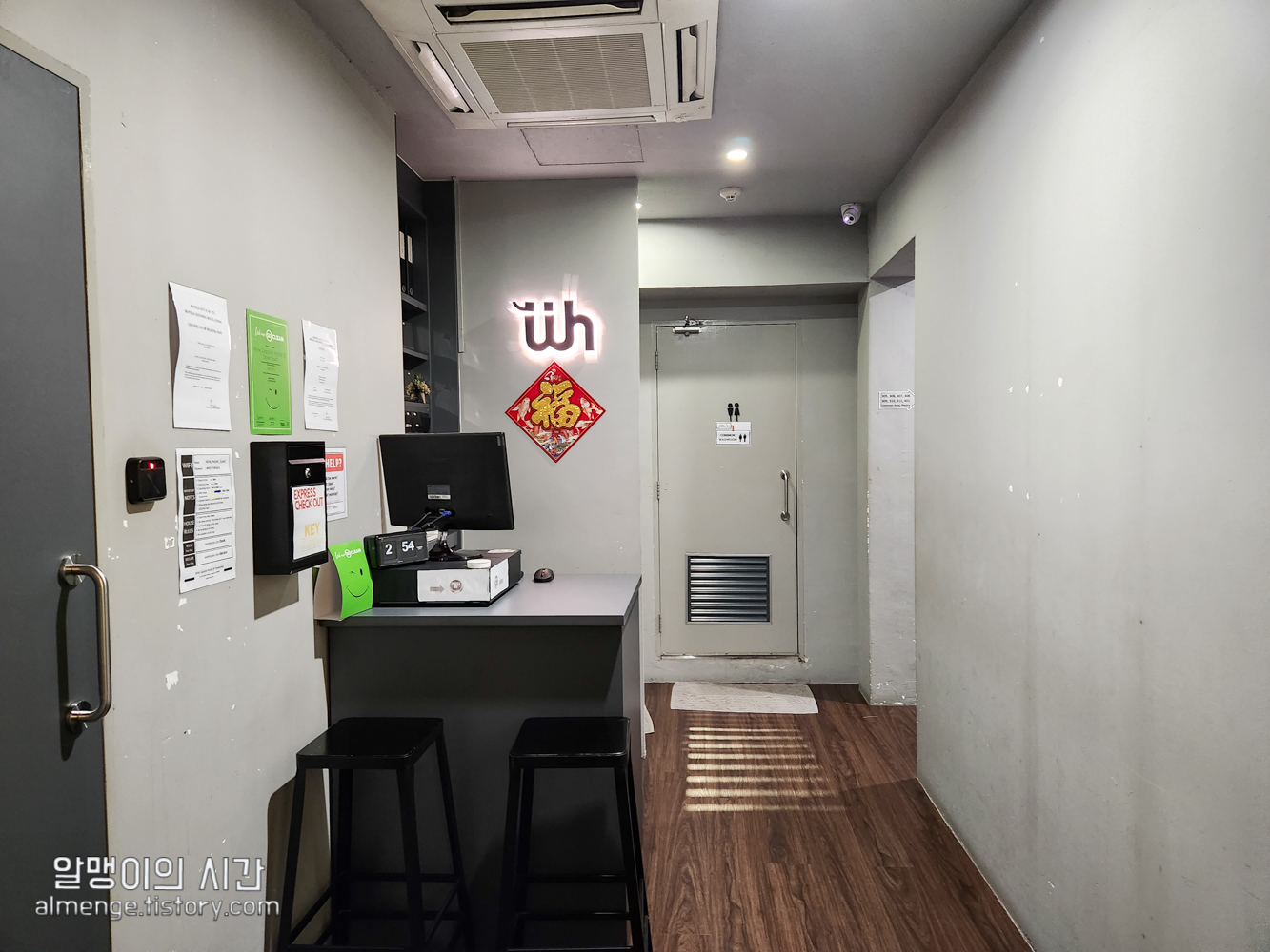 카드키를 찍고 들어가니 아담한 리셉션, 공용 화장실이 보인다. 새벽이라 직원분은 안계셨음. 사장님은 낮에 봤는데 중국계 아시아인이신듯.